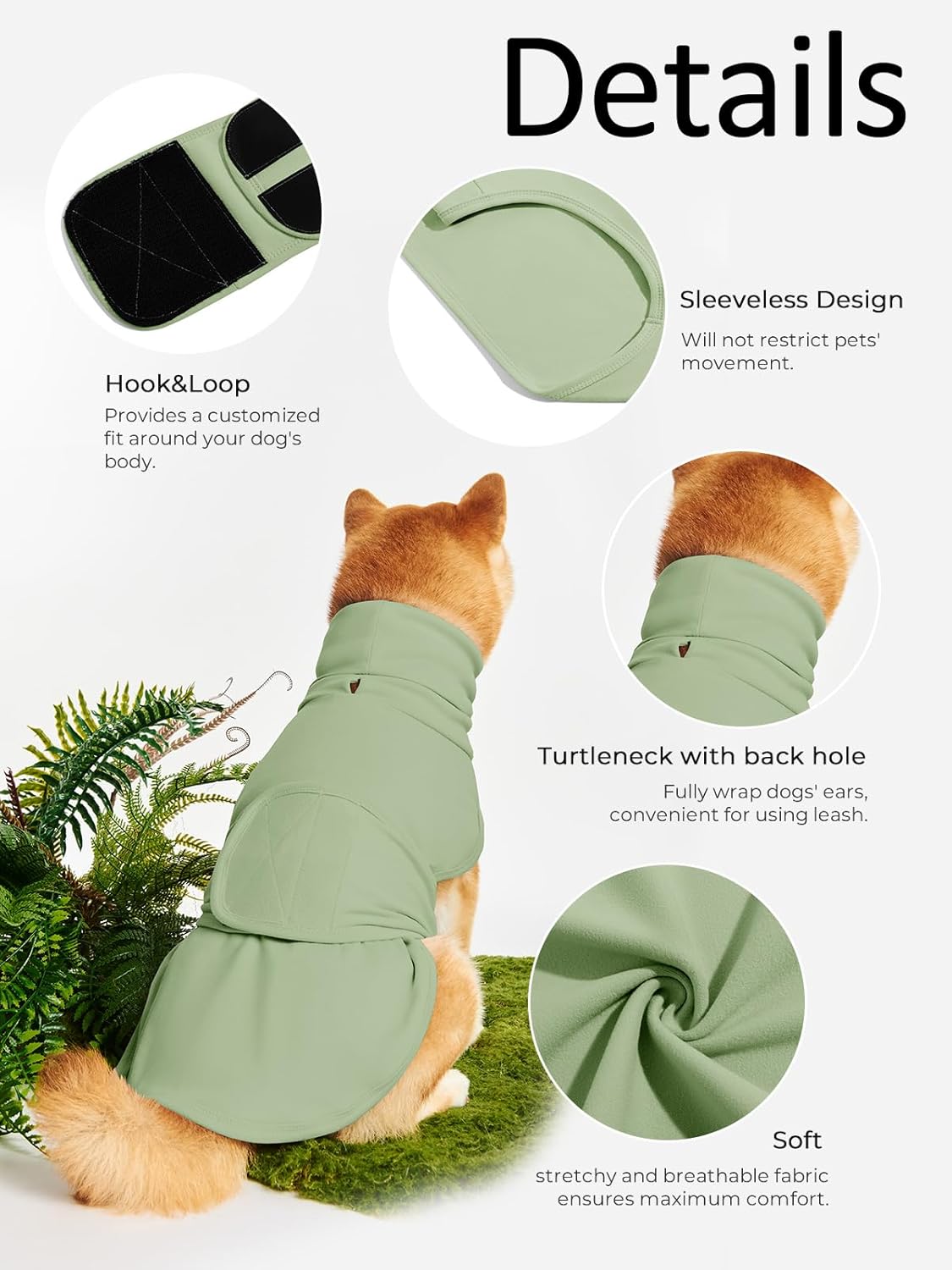 Functional Design: Without any complicated design, this dog thunder jacket can be applied in minutes. There are adjustable Velcro tape on the back that provides a snug, secure customized fit around your dog’s body. While the turtleneck detail fully wrap dogs ears, which not only offers gentle protection but also adds warmth