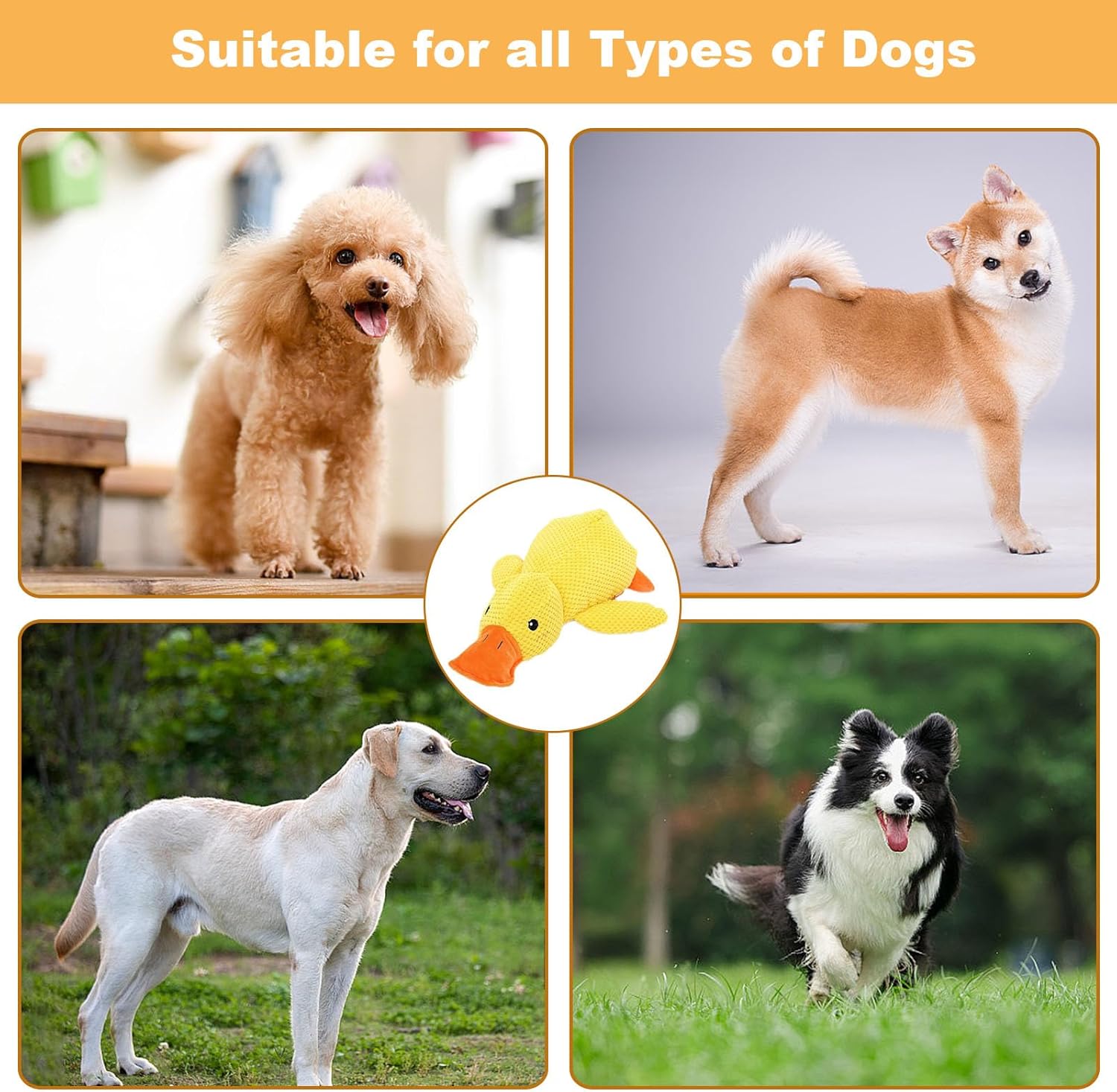 【Interactive Squeaky Duck for Fun Play】Featuring a quacking sound, this dog duck toy keeps pets entertained while providing a soothing experience. Ideal for interactive play, snuggling, and stress relief.