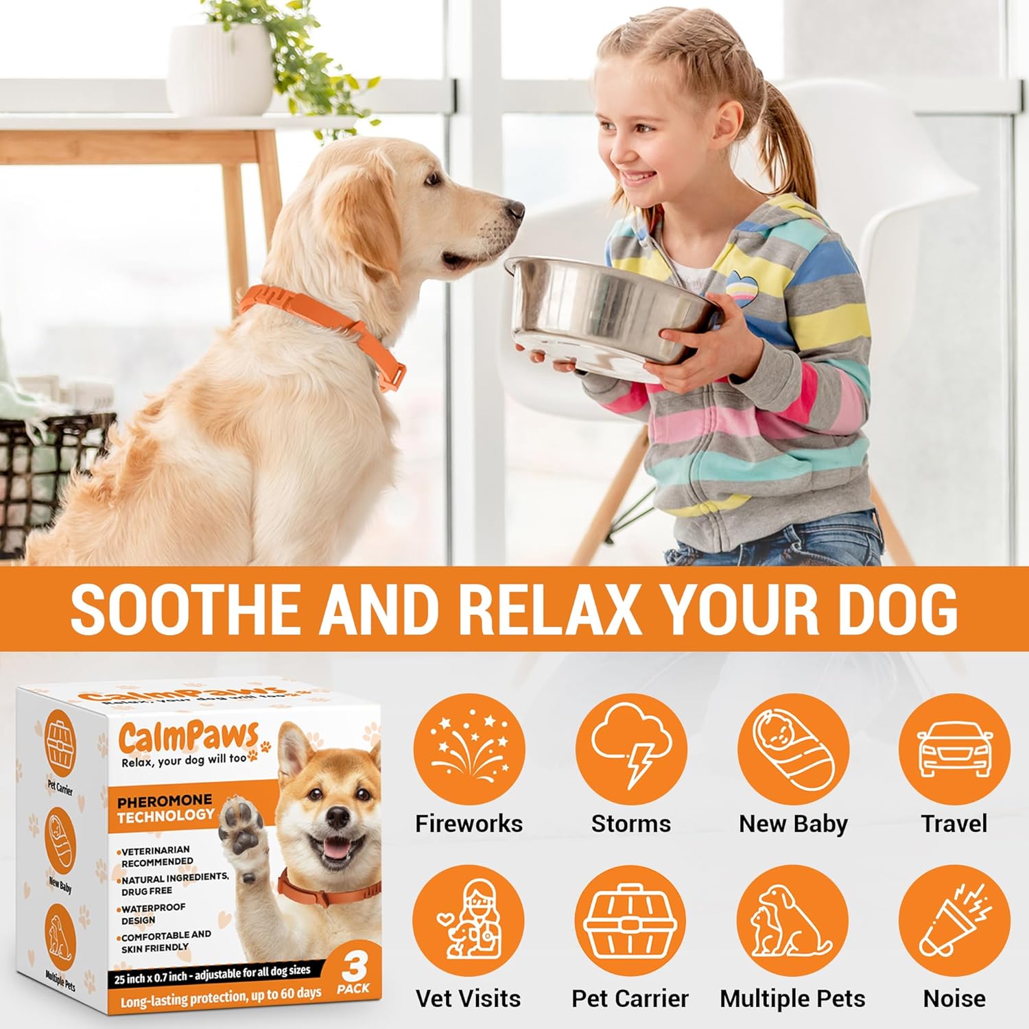 🛡️ CalmPaws 3 Pack, Calming Collar for Dogs, Dog Calming Pheromone Collar, Relief Anxiety Stress Separation, Lasts 60 Days, Adjustable for All Dogs — Safety, Comfort & Current Price (Review)