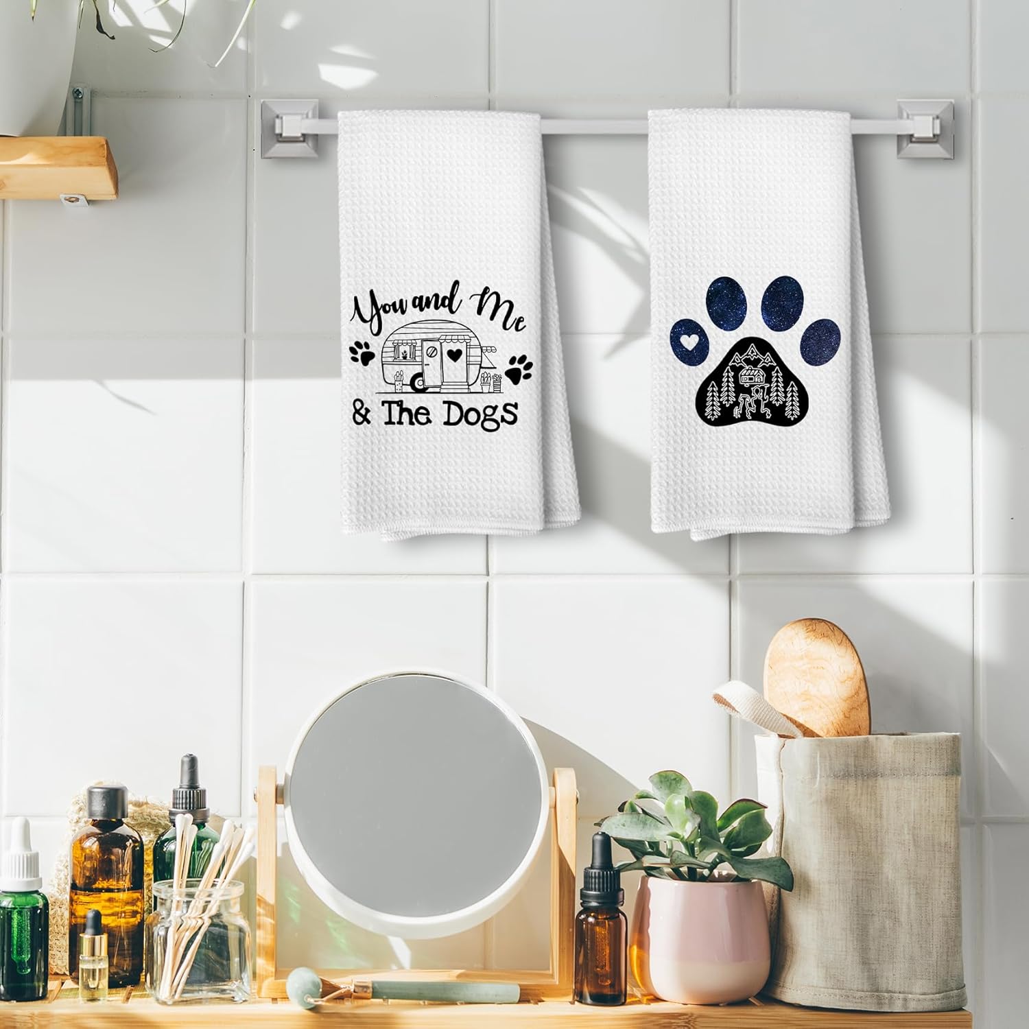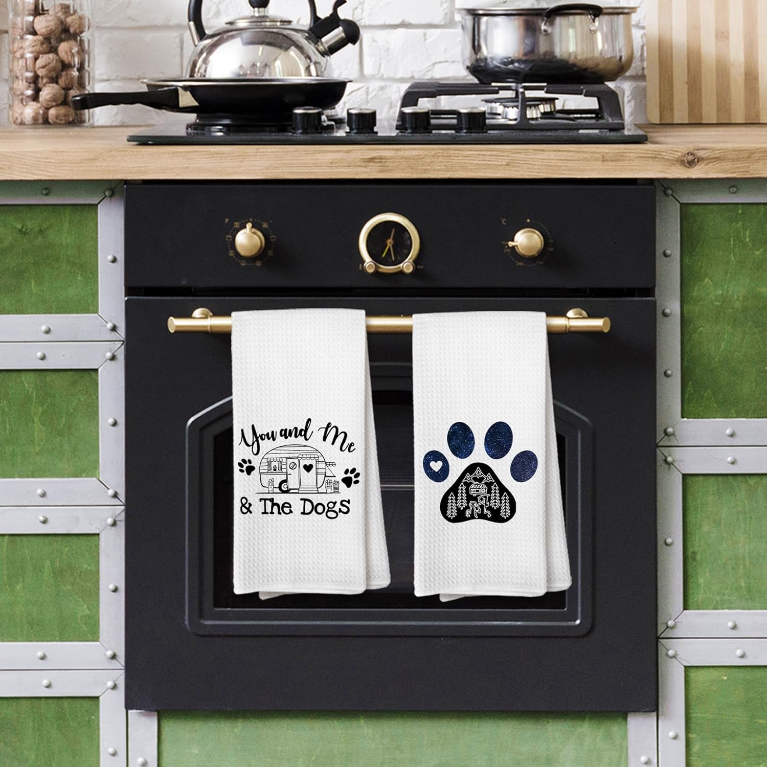 π² White You and Me and The Dogs Camping Kitchen Towels, Dog Kitchen Towels, RV Campsite Decor, Camping Supplies for RV Campers Campers Lovers Women Men 16×24 in Set of 2 β Outdoor Dog Gear Review & Current Price