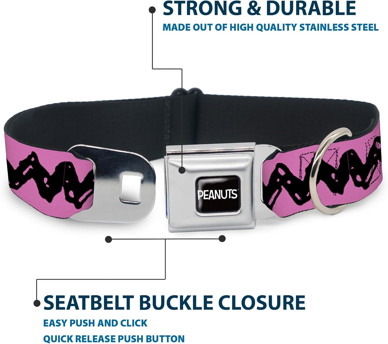 Made from high-density polyester and durable steel components, this collar is built to last and features beautiful vibrant artwork.