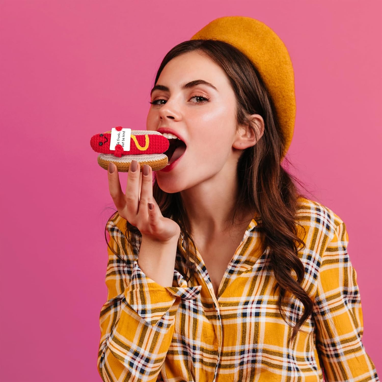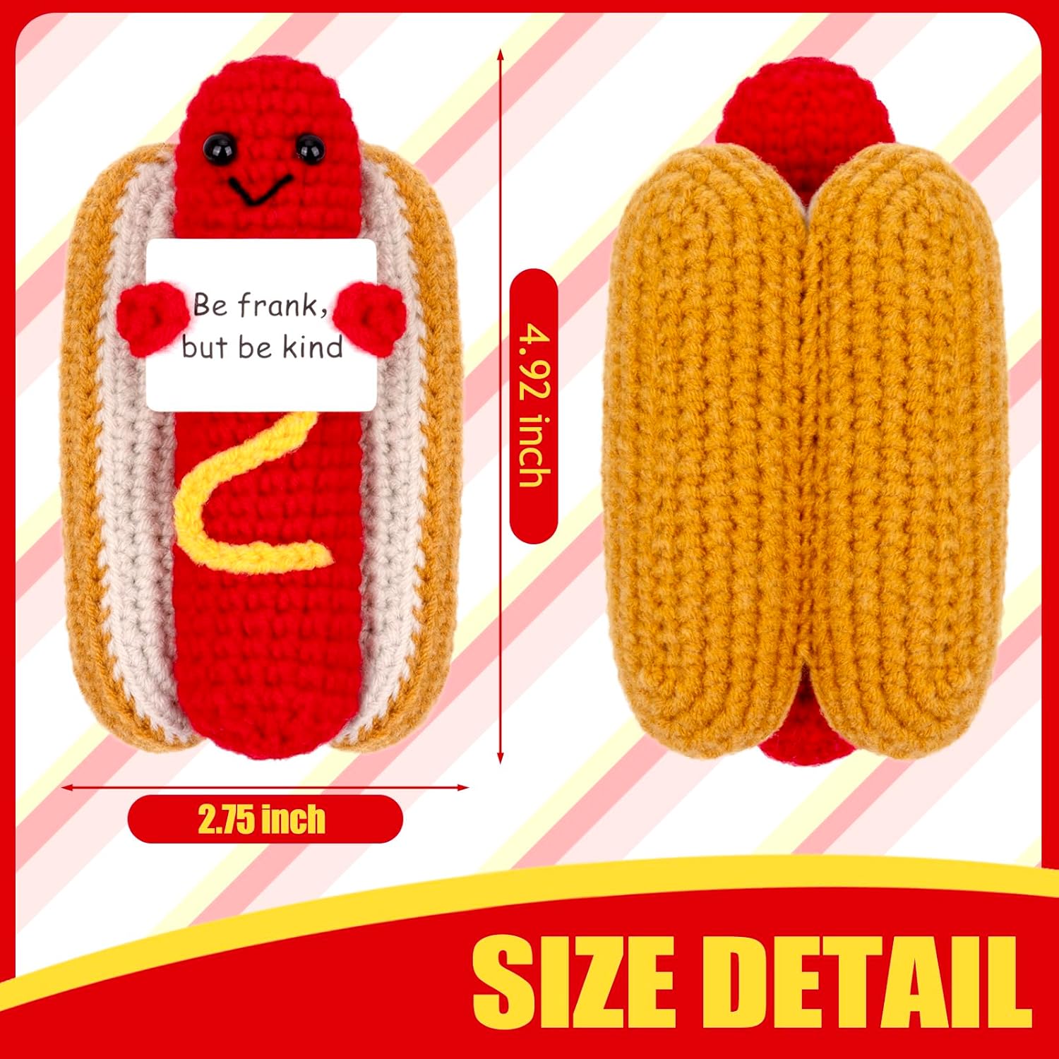 Handmade & Good quality: This little crocheted hot dog is absolutley adorable!!! Great little positive reminder that you important. Very well made, stitching is flawless and shape is perfect. Cute little size for display. When pinch it, you will feel so soft to the touch but not floppy