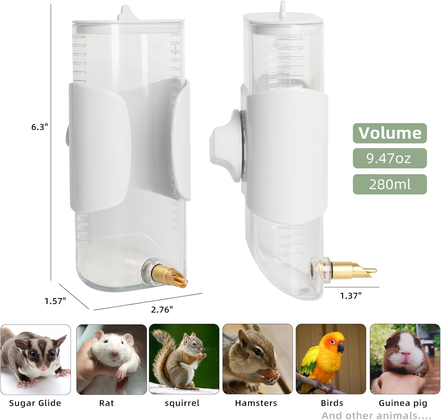 【Automatic Water Dispenser with Brass Nozzle】 The brass bite nozzle allows water to flow with a gentle touch. The new design is chew-resistant and prevents leakage. It’s an ideal choice for hamsters, mice, sugar gliders, guinea pigs, chinchillas, parrots, and other small animals, providing convenience for their daily water intake.