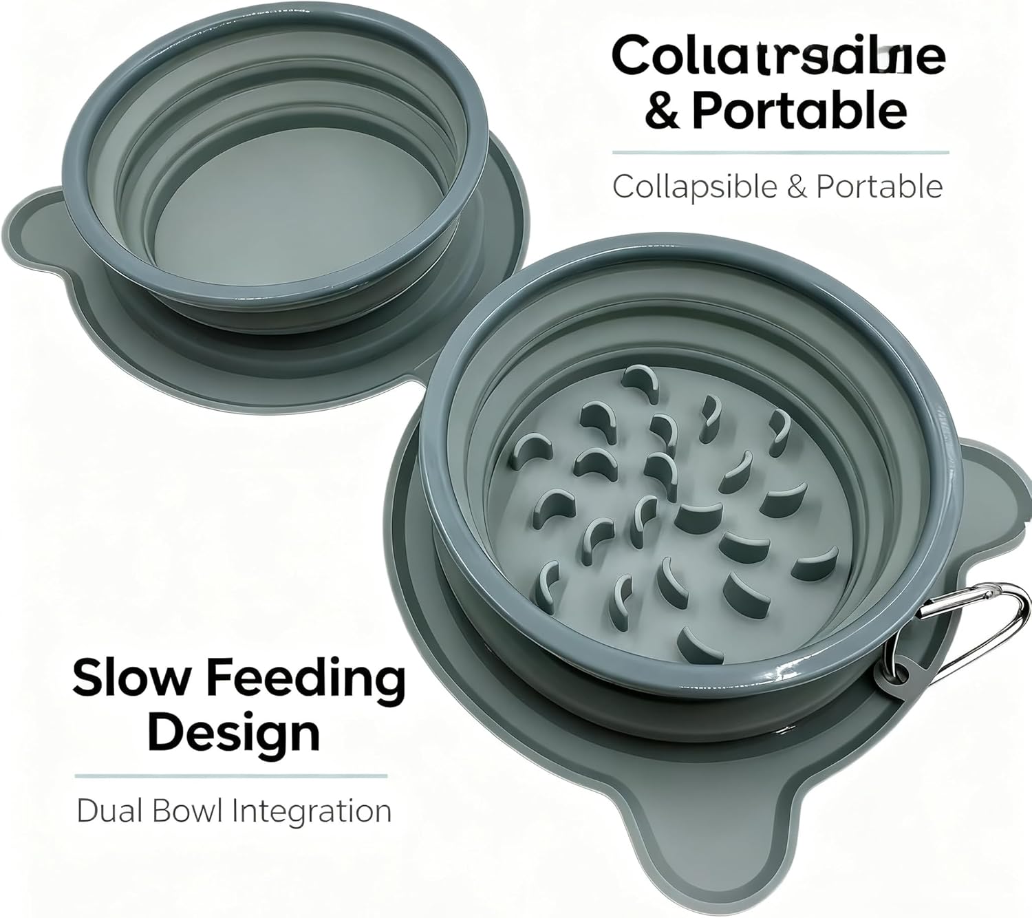 🧳 Portable Collapsible Dog Bowl, 2-in-1 Double-Sided Slow Feed Pet Dish with Non-Slip Base & Carabiner, for Hiking, Camping, Travel (Gray) — Dog Travel Gear Review & Current Price