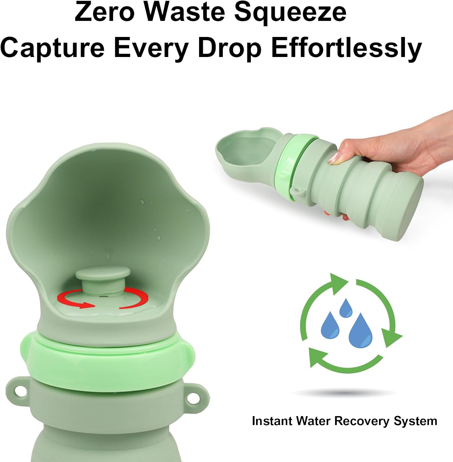🚀 Space-Saving Collapsible Design:The dog water bottles transform from 14oz adventure-ready reservoir to 8.5oz compact pod with our accordion-style silicone body. Perfect water bottles for backpack pockets or car cup holders, this collapsible wonder eliminates bulky gear struggles during hiking/camping trips