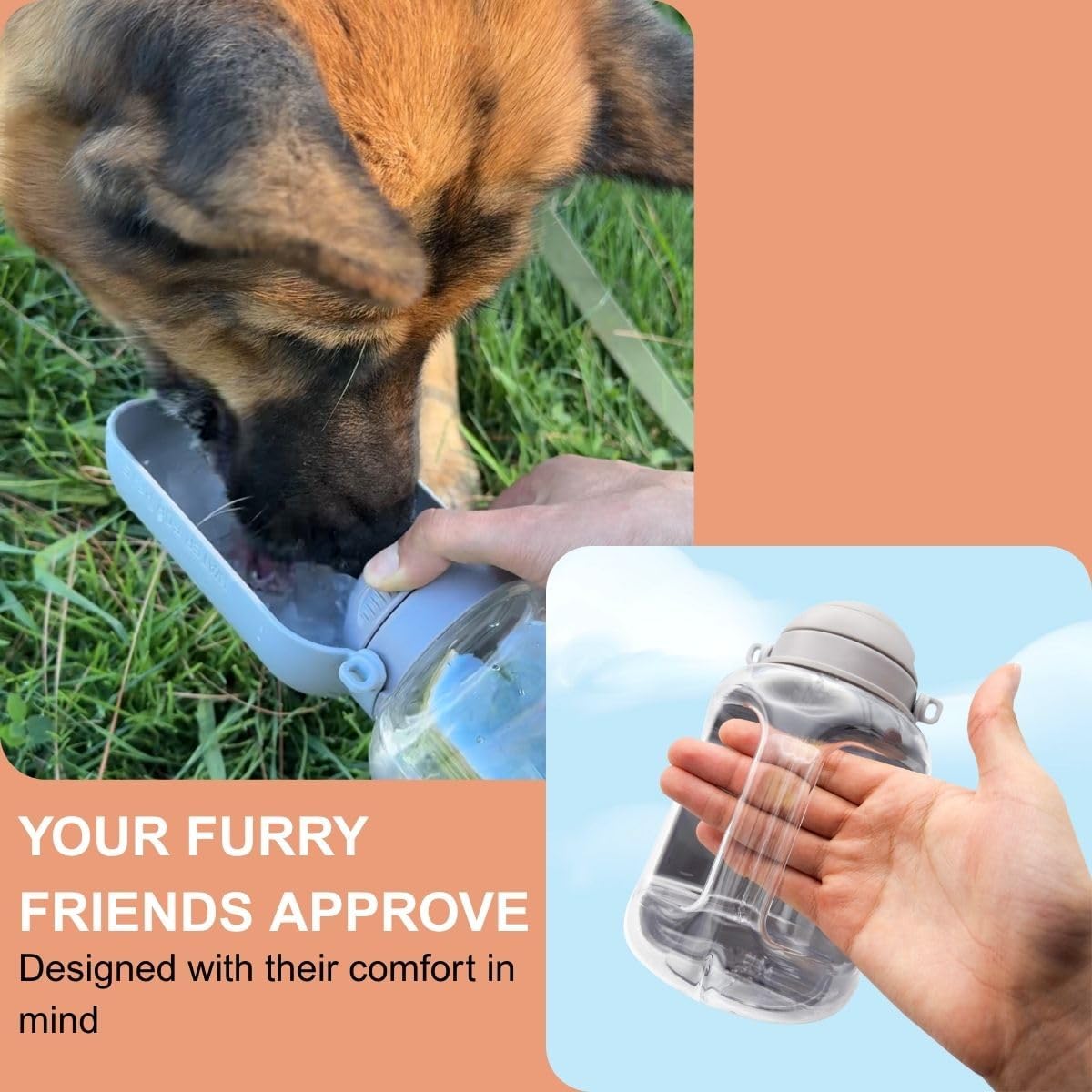 [2-in-1 Water Bottle & Collapsible Bowl Combo] No more carrying separate items—this smart design combines a water bottle and collapsible bowl in one, making it easy for your dog to drink anytime, anywhere.