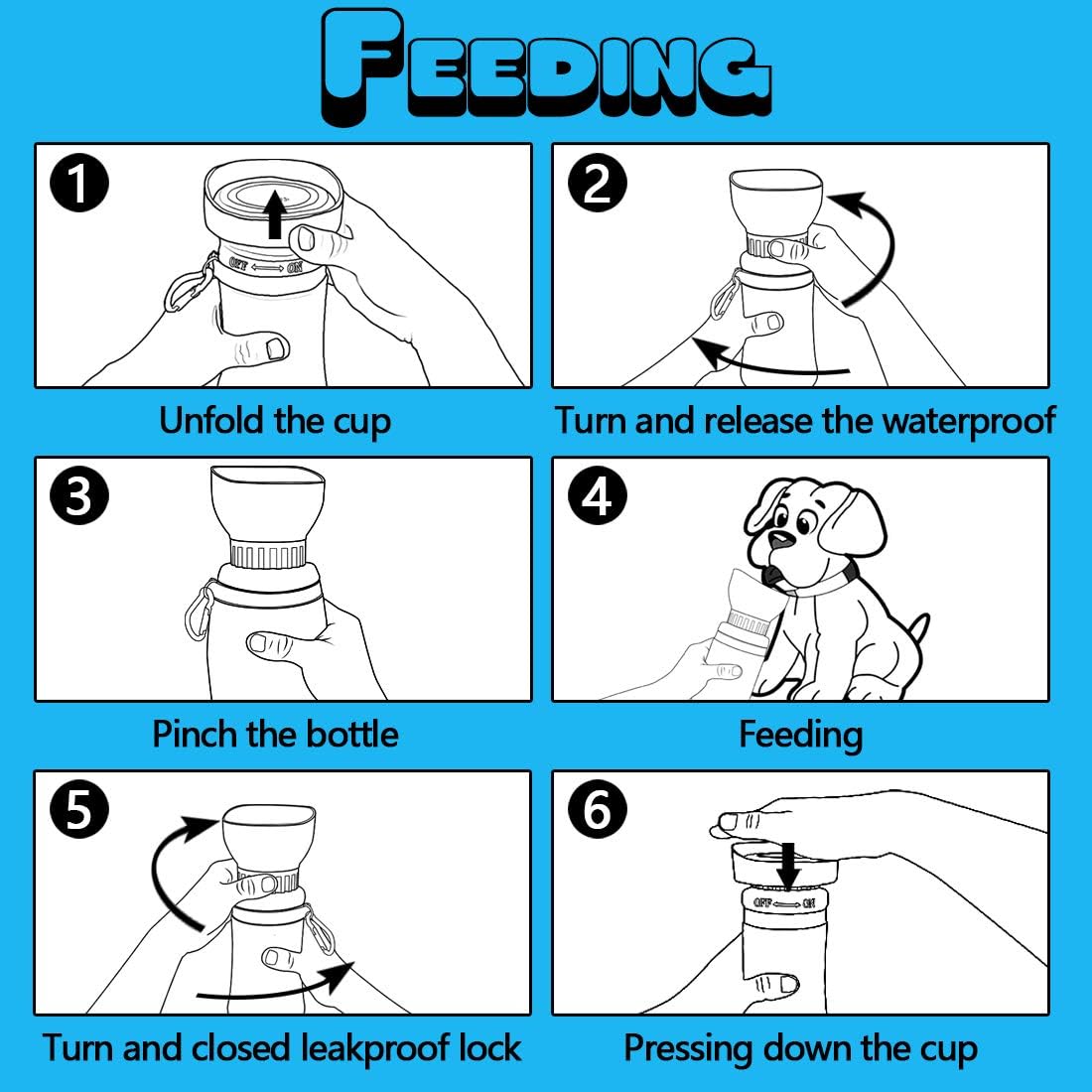 2 in 1 portable dog bowl water bottle built-in water pipe allows your pet to keep the bottle vertical of drink water even if there is only a little quantity of water in the bottle that can also be squeezed without wasting water.