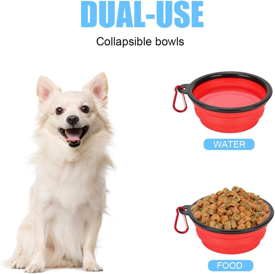 Durable reusable and easy for storage and transportation The bowls include color-matching carabiner clips that can attach to belt loop backpack leash or other locations