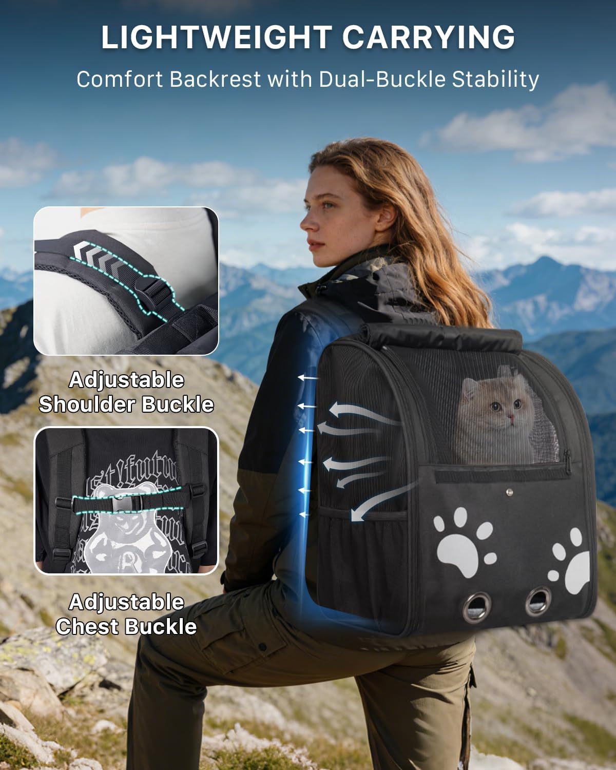 Comfortable Ventilated Cat Backpack Carrier for Pets up to 15lbs