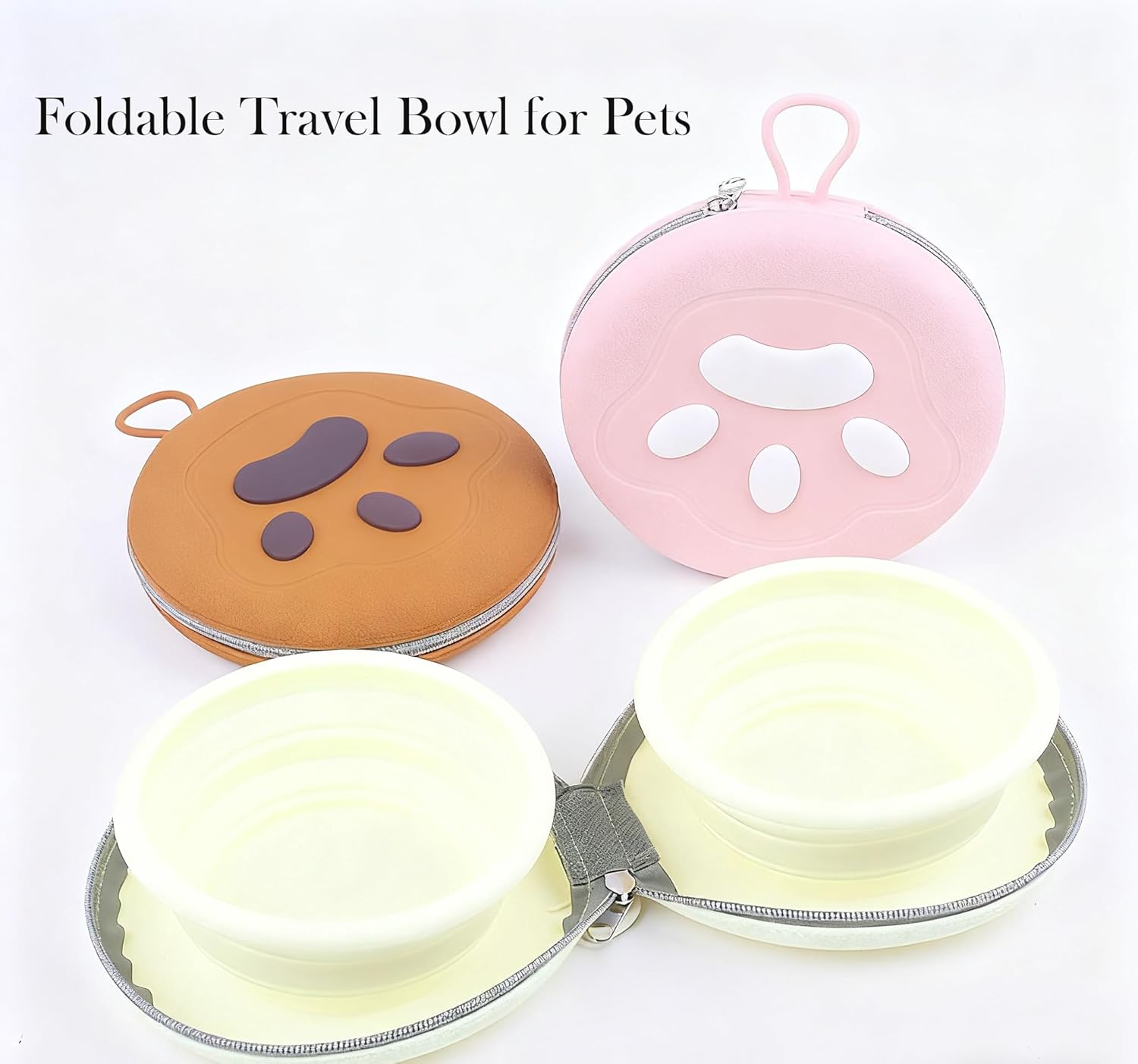 🧳 Collapsible Dog Bowls,2-in-1 Pet Bowls with Zipper Carrying Case and Carabiner Clip for Traveling Hiking Camping Walking,Pink — Dog Travel Gear Review & Current Price