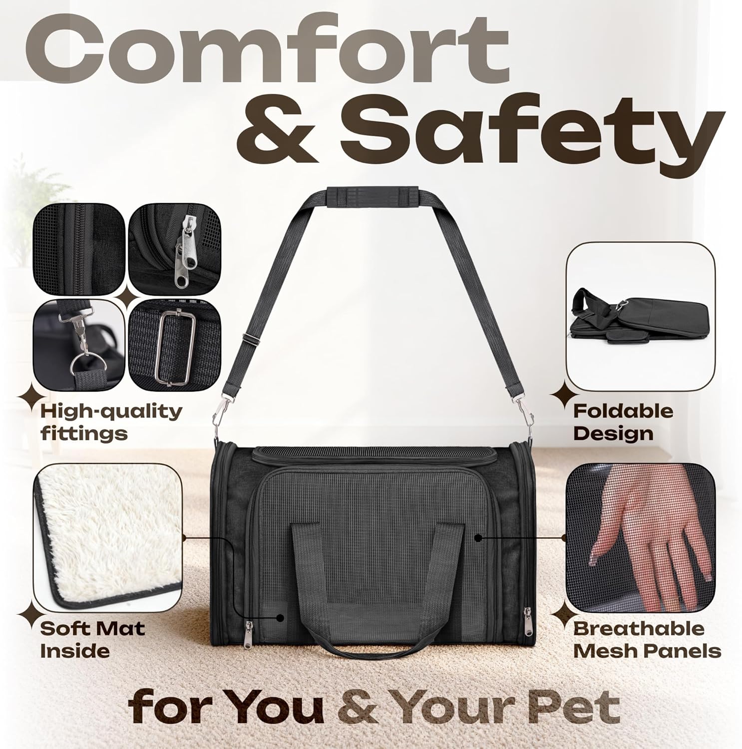 ✈️ Airline Approved Medium Pet Carrier for Cats & Dogs – Foldable Dog Bag with Soft Mat, Breathable Mesh Windows, Travel-Ready Cat Carrier (Up to 15 lbs, Black) — Airline-Approved Dog Carrier Review & Current Price