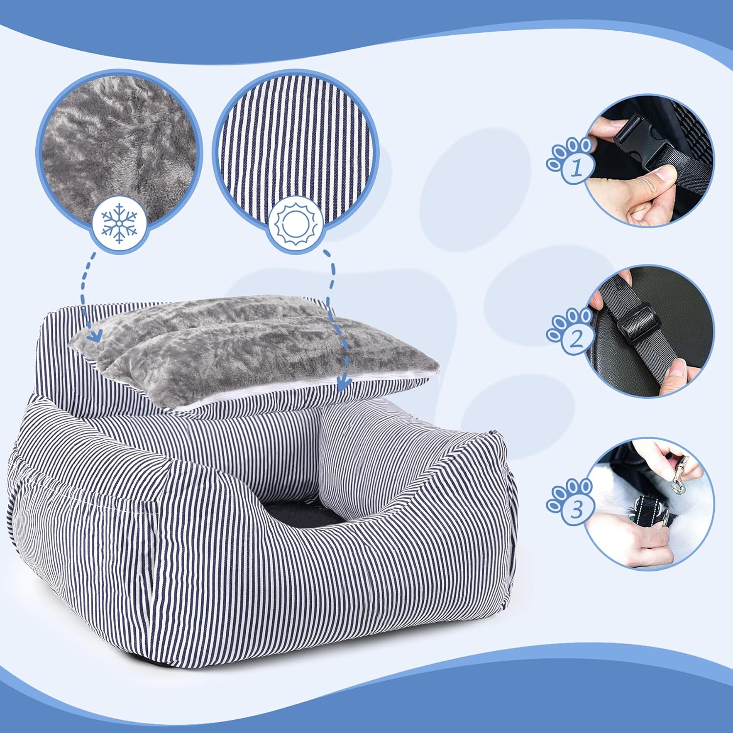 🧳 Dog Car Seat for Small Dogs, Pet Booster Seat with Clip-On Safety Leash and Storage Pockets, Washable Travel Dog Car Bed for Puppy (Blue White) — Dog Travel Gear Review & Current Price