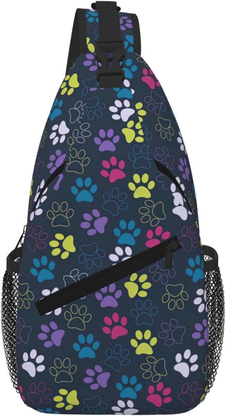 Compact Dog Paw Print Sling Backpack for Outdoor Adventures