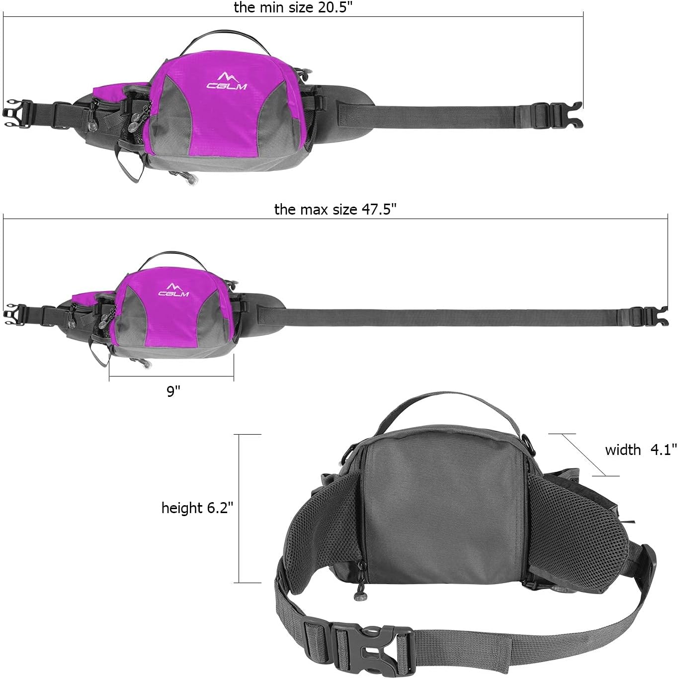 Material: Water Resistant Nylon Color:Black\Red\BlueWaist Pack Size: 9″ 4.1″ 6.2″(L”W”H”)Adjustable Waist Belt: 20.5″-47.5″Water Bottle Holder: Maximum Diameter 3.5″Gender:Unisex