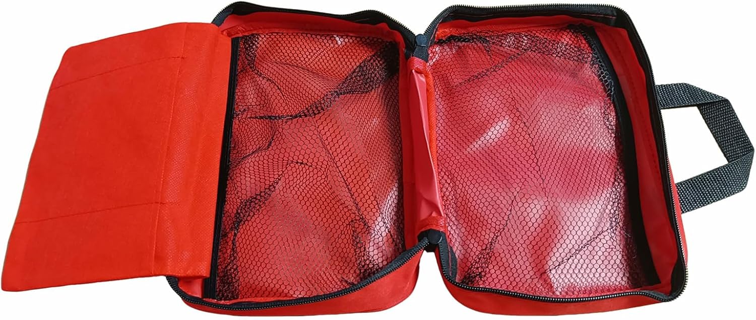 ❸The versatile first aid bag has netted pockets as well as a fold out part to allow for plenty of storage. Easy zipper, section dividers for organization and quite spacious. It is small enough to pack in your carry-on luggage but large enough to hold all the items you need in a small compact package.