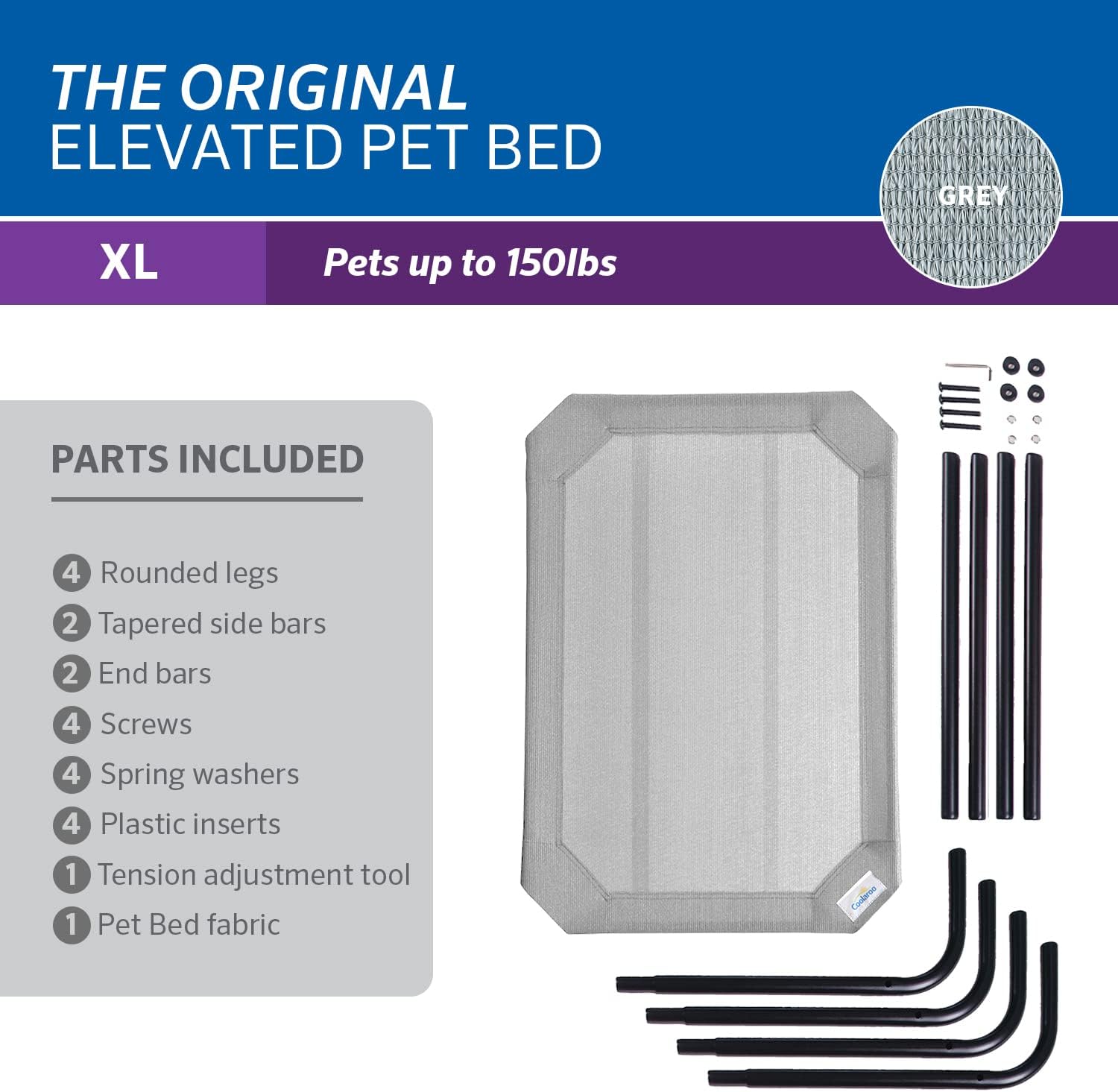 Coolaroo Elevated Dog Bed: Breathable, Cooling, Moisture-Resistant, XL Gray