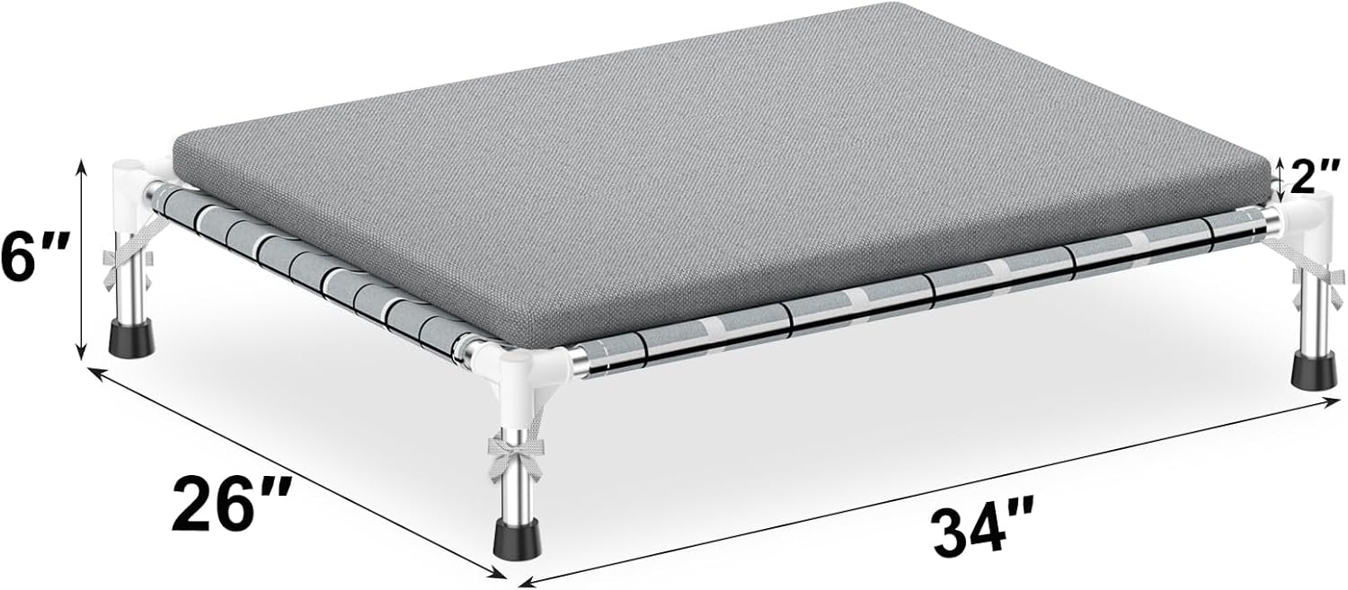 【EASY CLEANING】:The elevated dog bed with cushion mat are more convenient than non-washable pet cot or other dog bed. Which can wipe the sponge mat for slight dirt. Keep your raised dog bed or lifted dog bed clean long-term