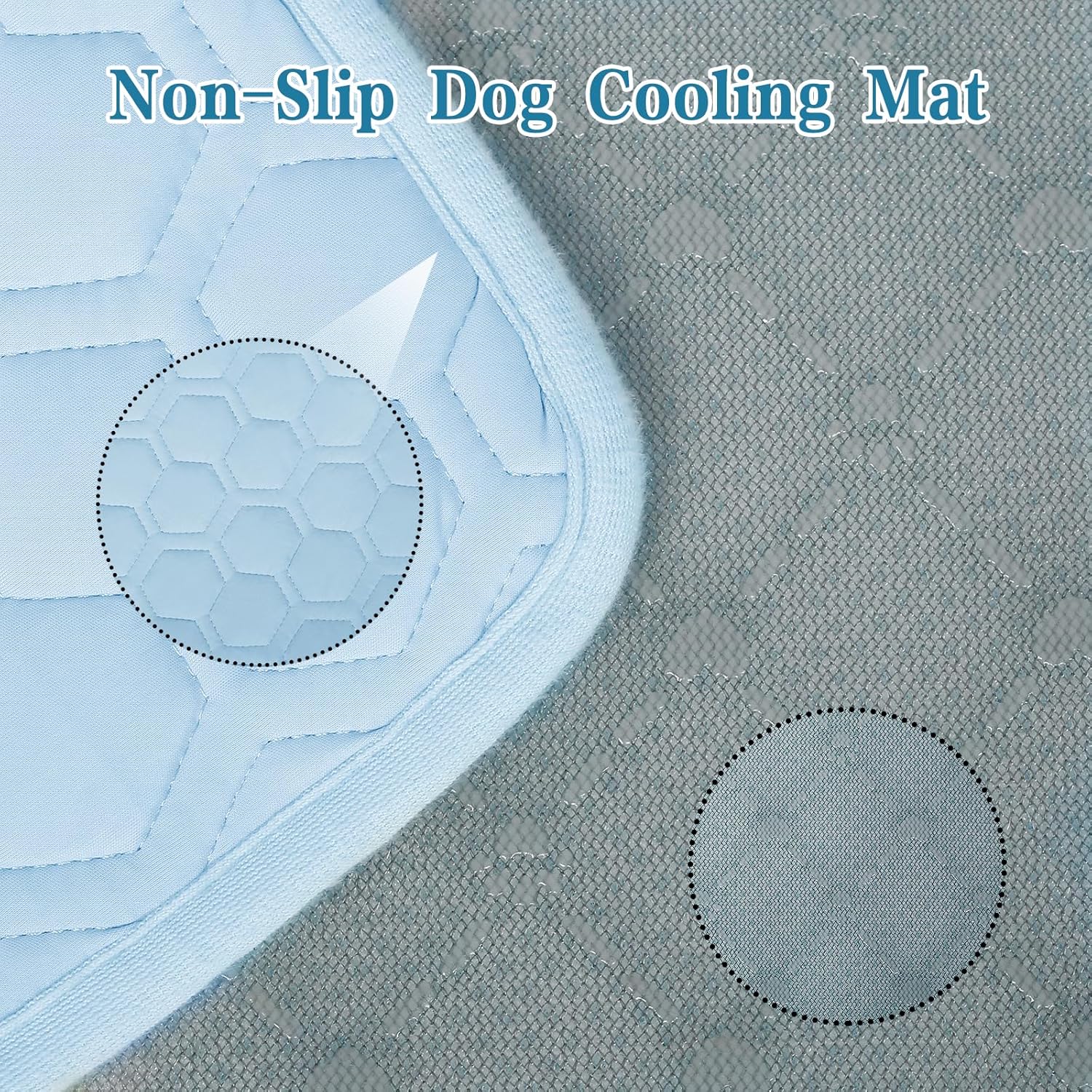 Dog cooling mat with a slip-resistant rubber base for placement, designed to keep pets cool on floors or outdoors. Durable, washable, and ideal for all seasons.