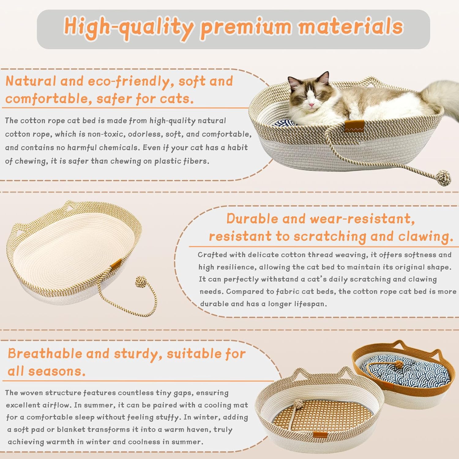 【Washable Cat Bed】: Cat bed washable, just clean the hair on the woven cat bed, you can wash it by hand or put it into the washing machine, easy to operate, can be washed and used repeatedly, it is the perfect choice for cats or small dogs.