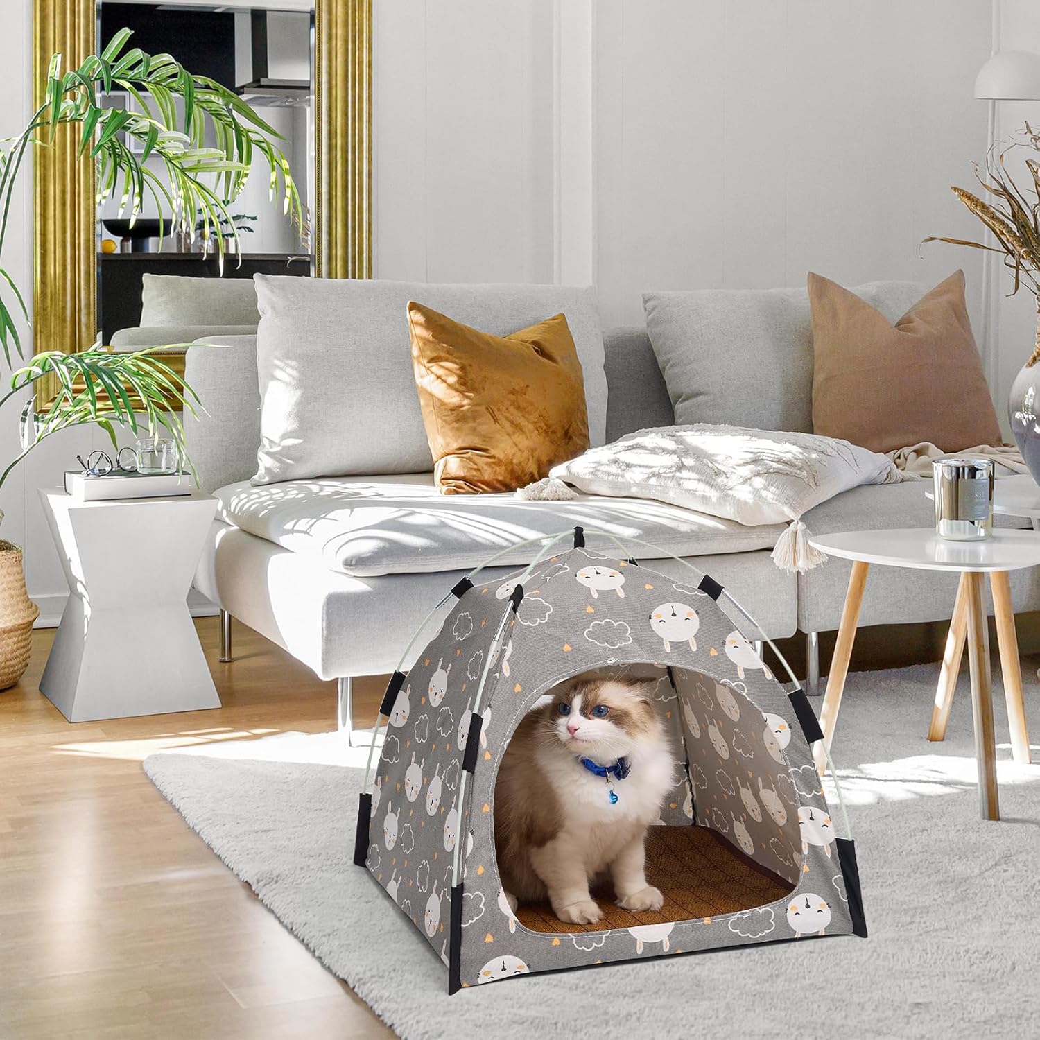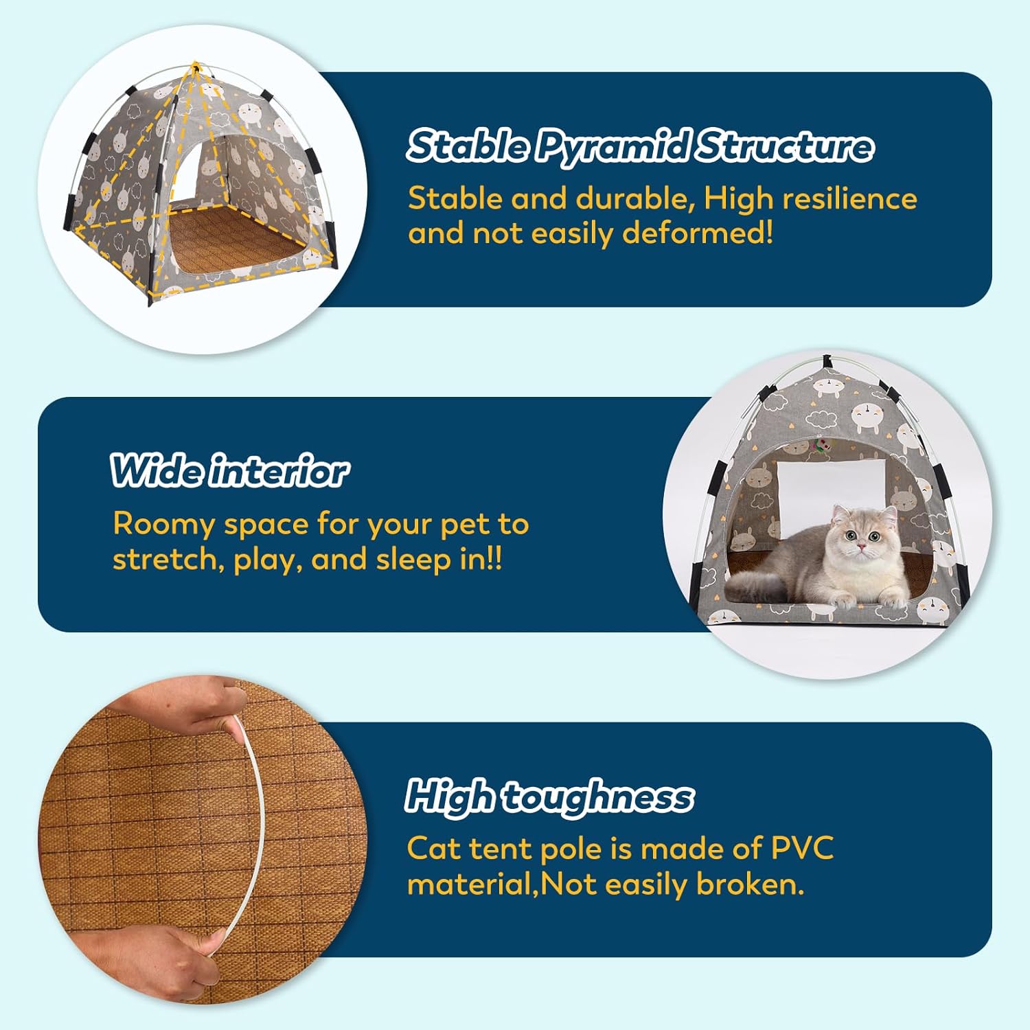 Stable and Long-Lasting – Featuring a pyramid structure and high-toughness cat and dog tent poles, our cat tents for indoor cats are designed for stability and durability, preventing deformation over time.