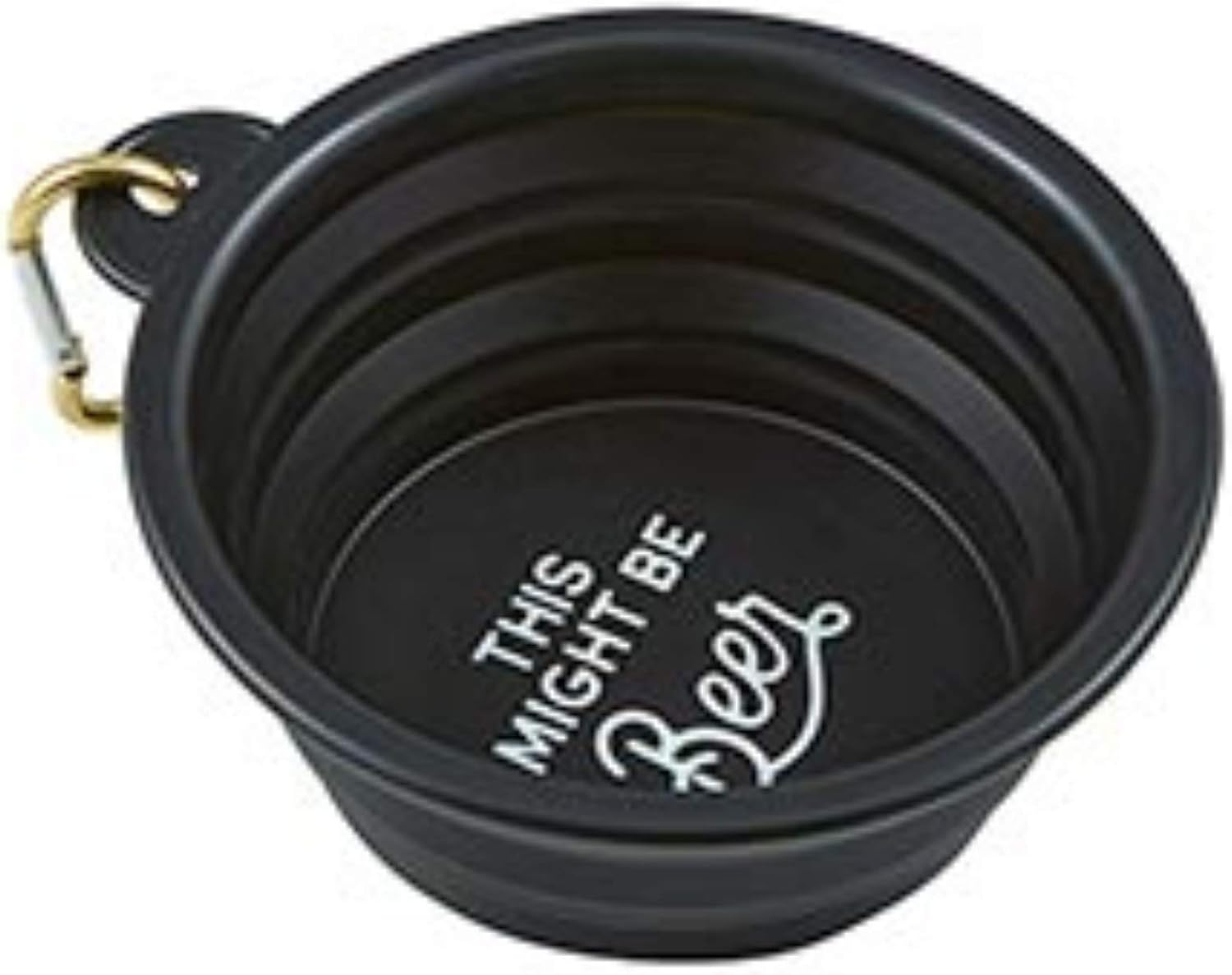 BEER: Black bowl with white letters which reads, “THIS MIGHT BE Beer”