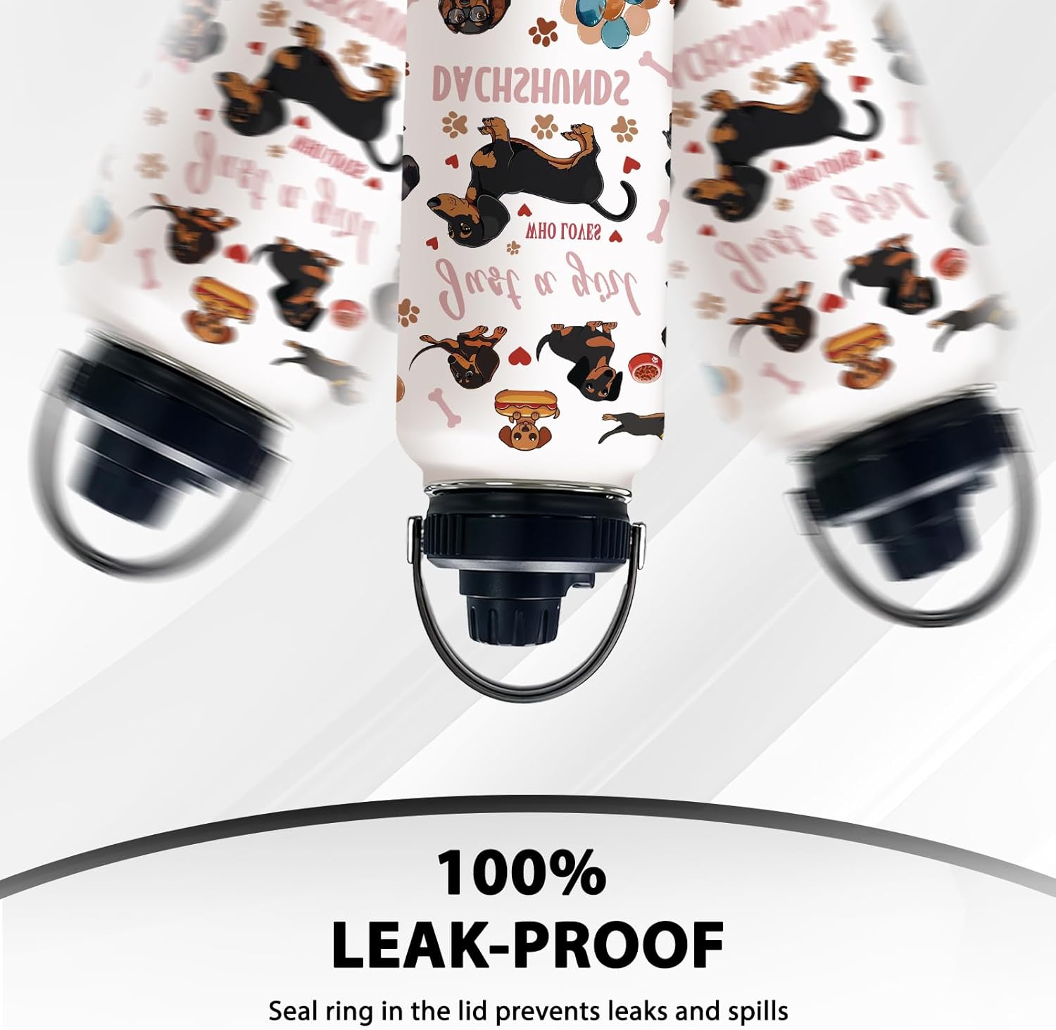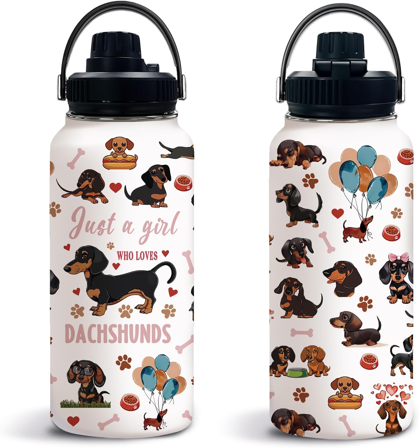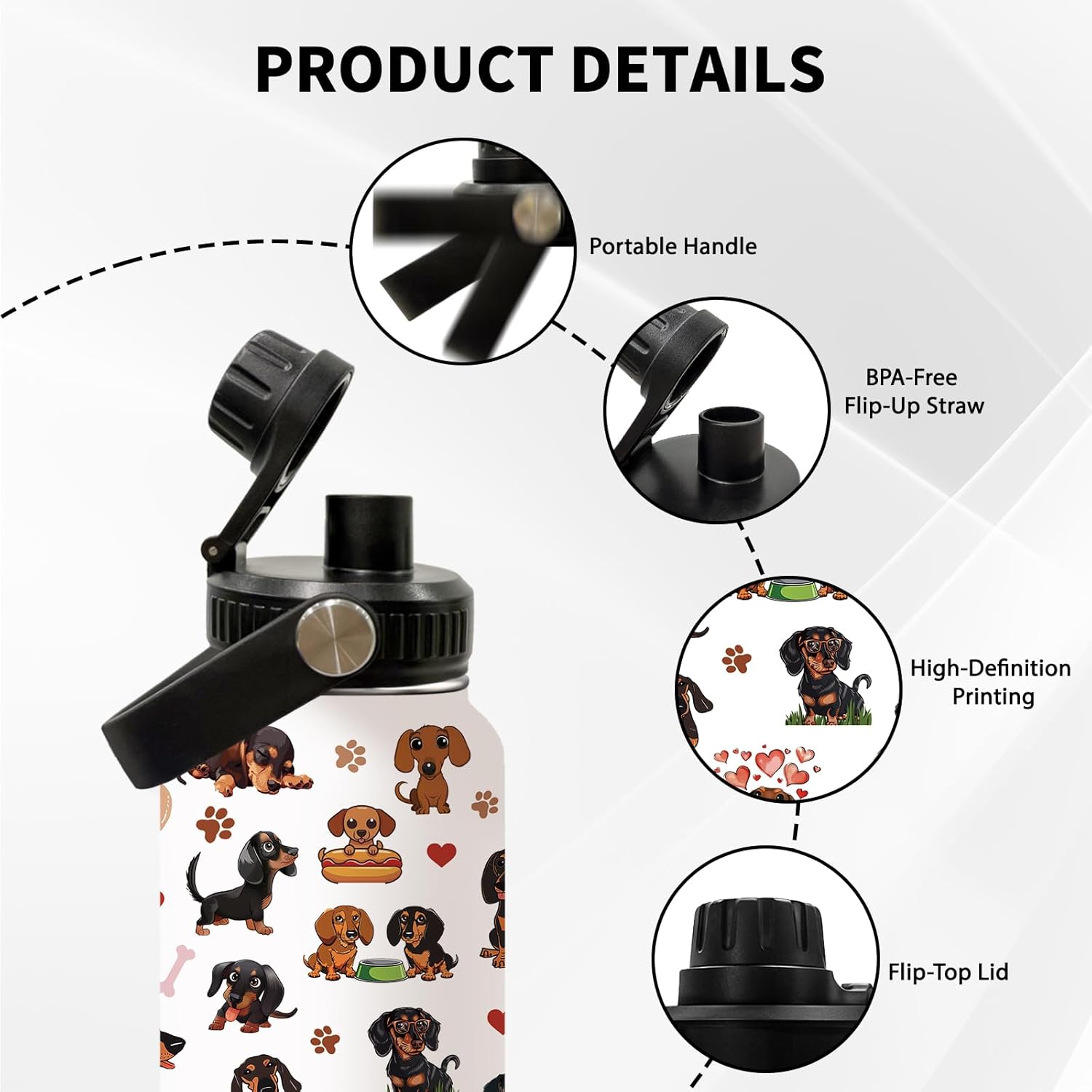 Dog-Loving Style for Everyday Life: This 32oz Dachshund water bottle features an adorable wiener dog design that brings smiles to every sip. A fun choice for daily use or as thoughtful dachshund gifts for women and proud dog moms alike