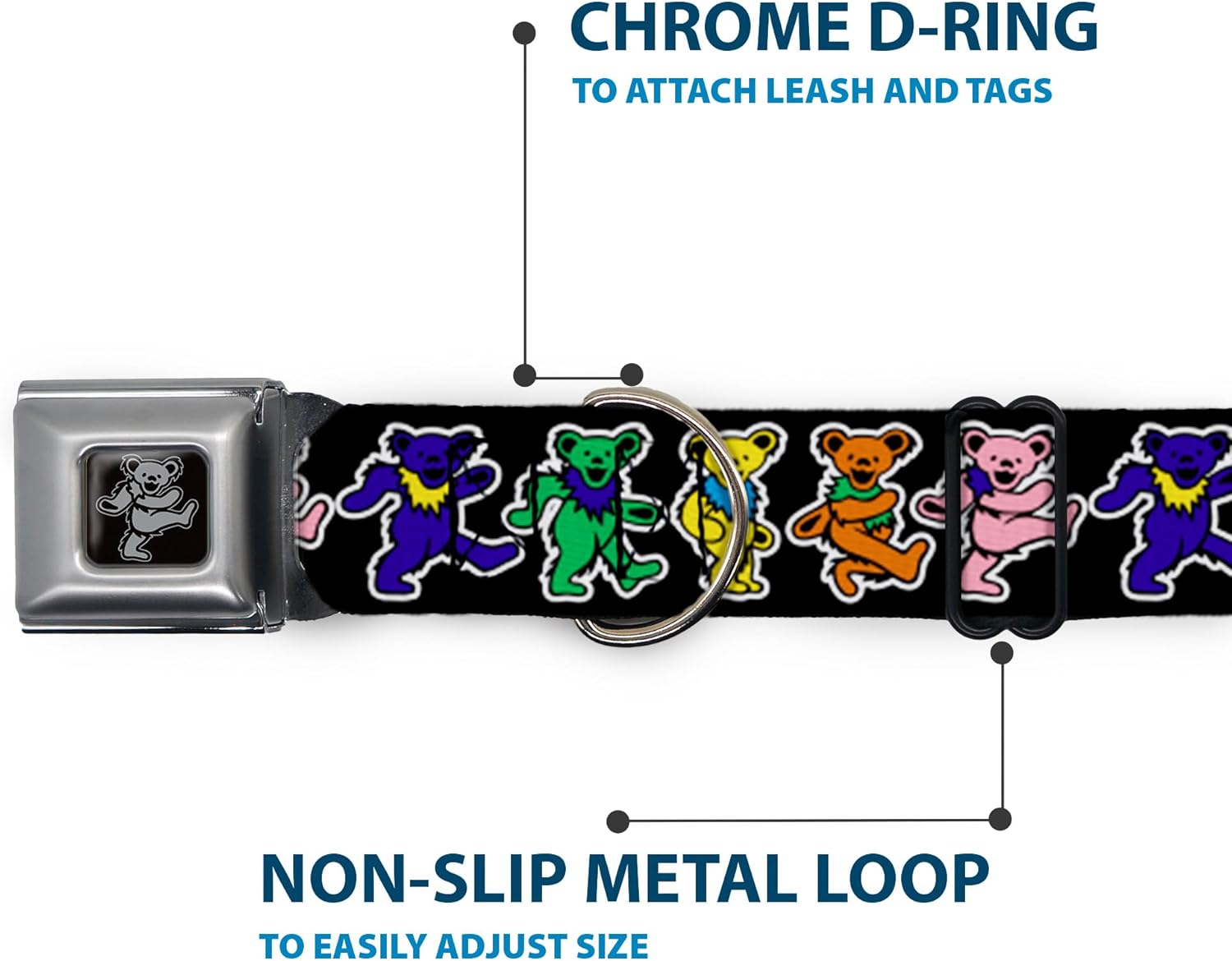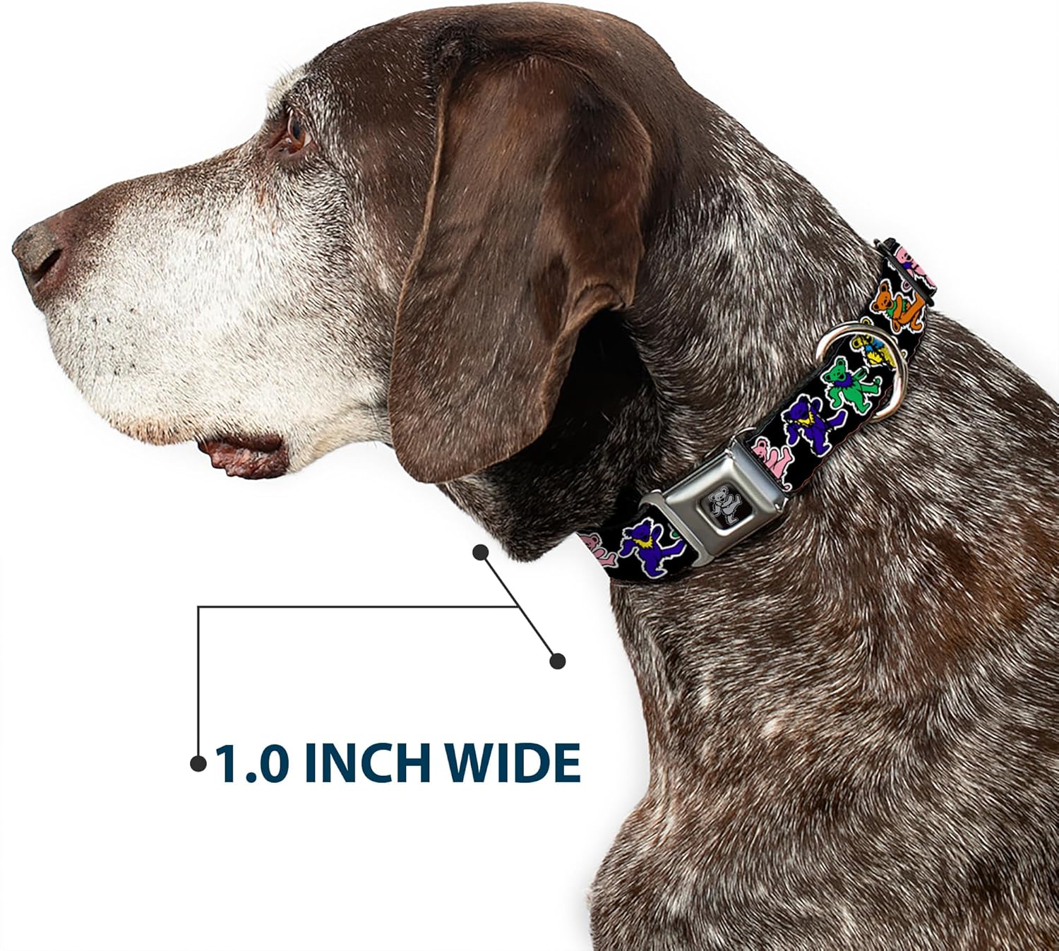 Buckle-Down Seatbelt Buckle Dog Collar – Dancing Bears Black/Multi Color – 1″ Wide – Fits 15-26″ Neck – Large