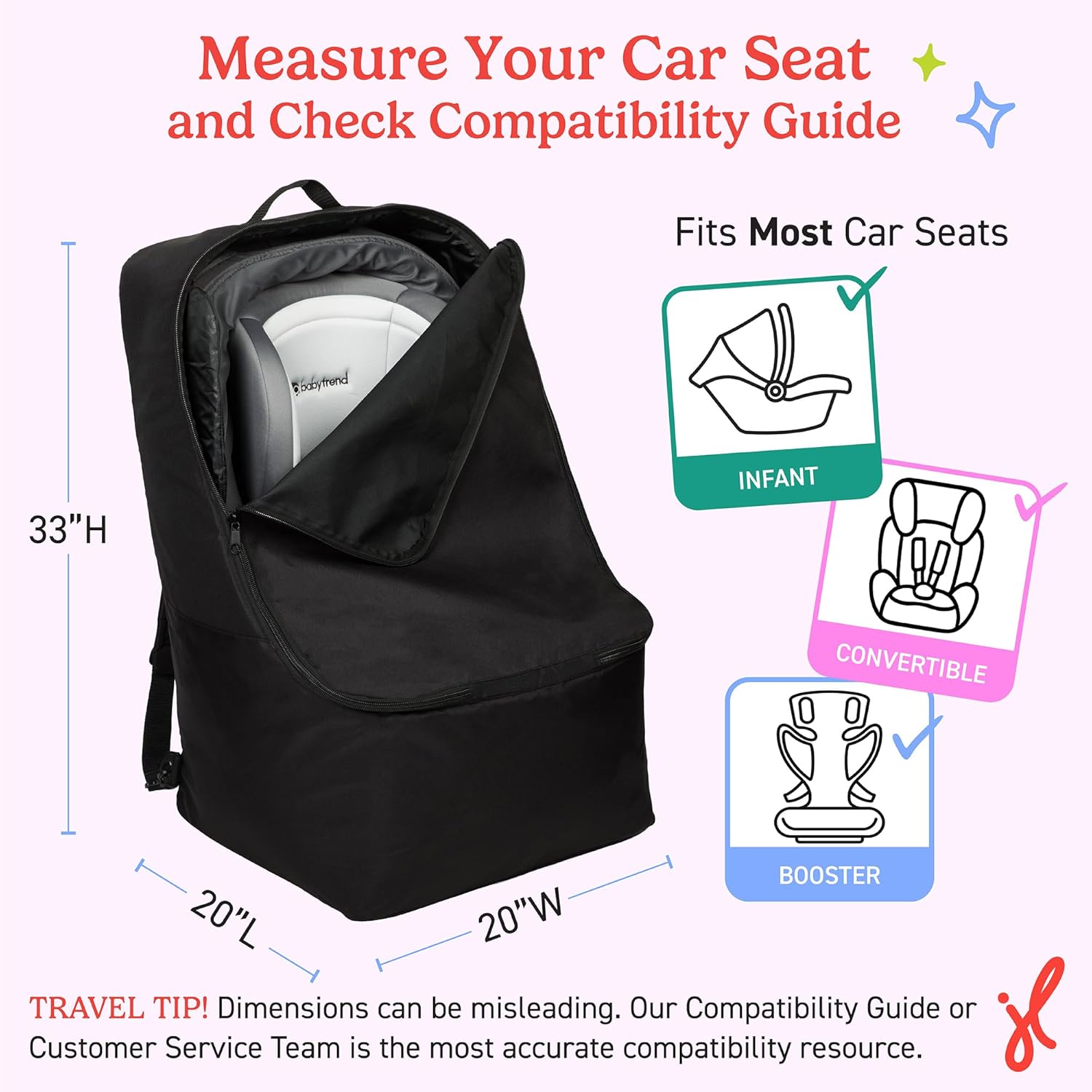 FITS MOST CAR SEATS – Whether you’re traveling with an infant carrier car seat, convertible seat, or booster seat, this durable bag ensures a secure fit. CHECK DIMENSIONS & MEASURE YOU CAR SEAT BEFORE PURCHASE.