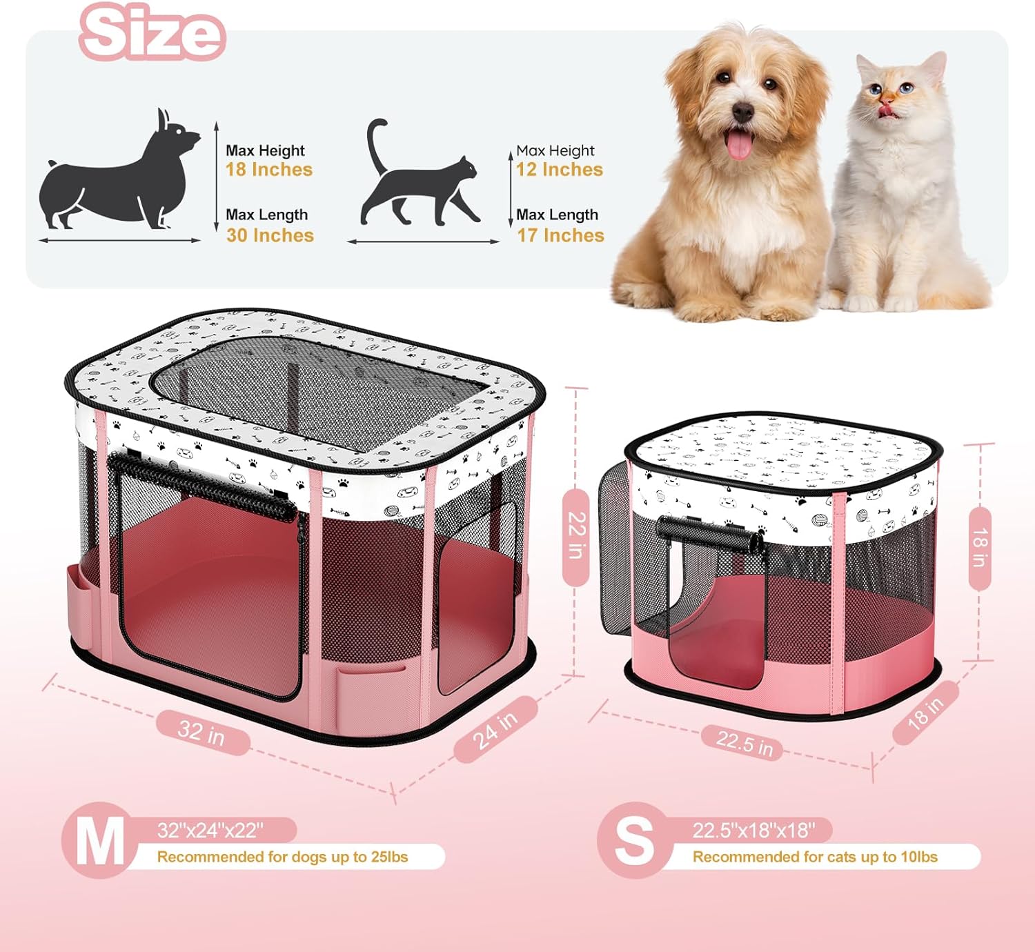 SUITABLE DIMENSIONS: Big Playpen: 32″L x 24″ W x 22 “H and Small Playpen: 22.5″L x 18” W x 18 “H, Please measure your pet’s size. This is recommended for cats and small-sized dog breeds. It can be used for rabbits, too. This is the one we should use to keep our pets more clean by separating spaces so as to support general health for them
