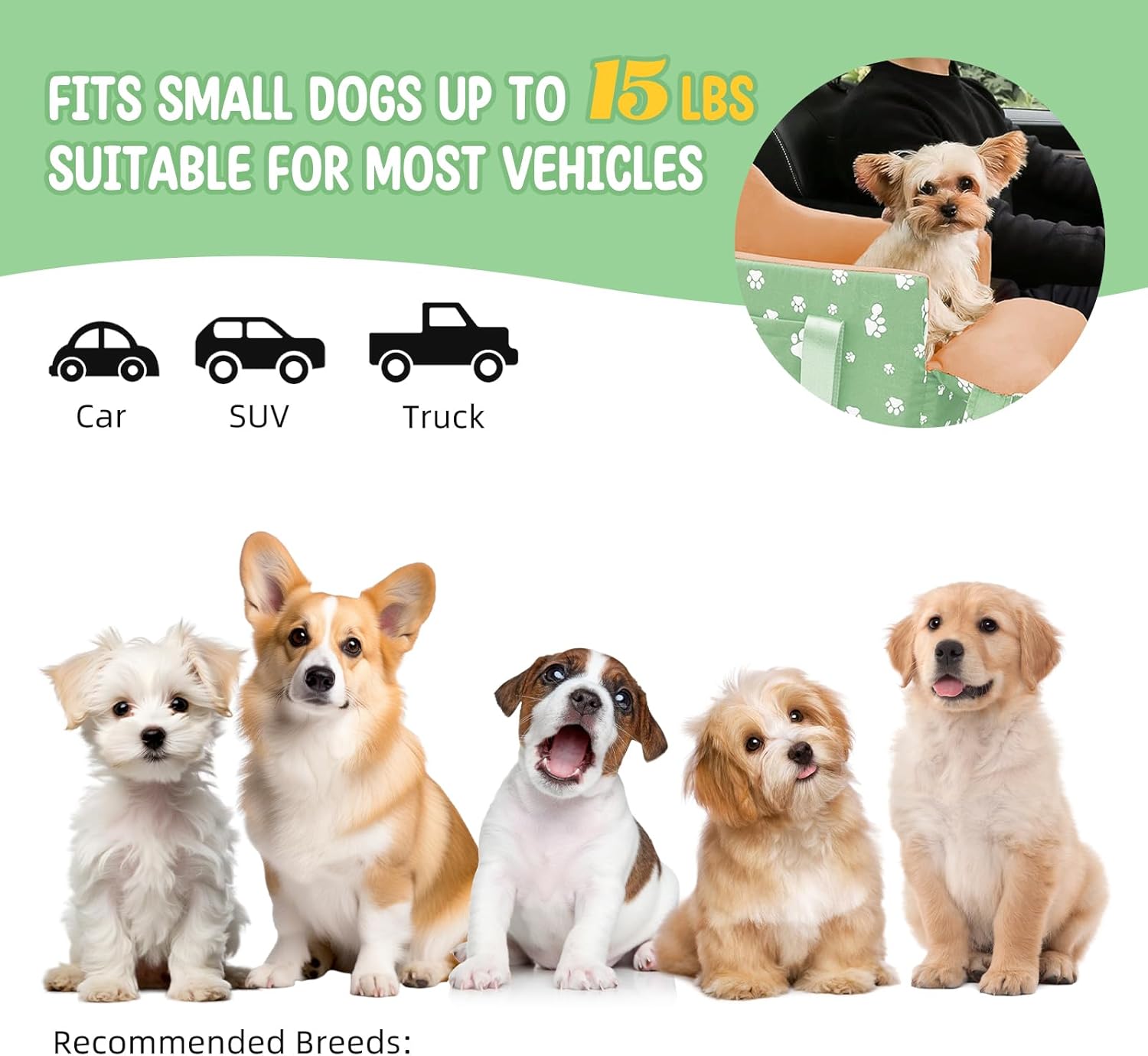 🧳 Cullaby Dog Center Console Car Seat for Small Dogs Under 15lbs,Detachable Washable Booster Pet Car Seat Travel Bed with Storage Pockets and Seat Belt(Green) — Dog Travel Gear Review & Current Price