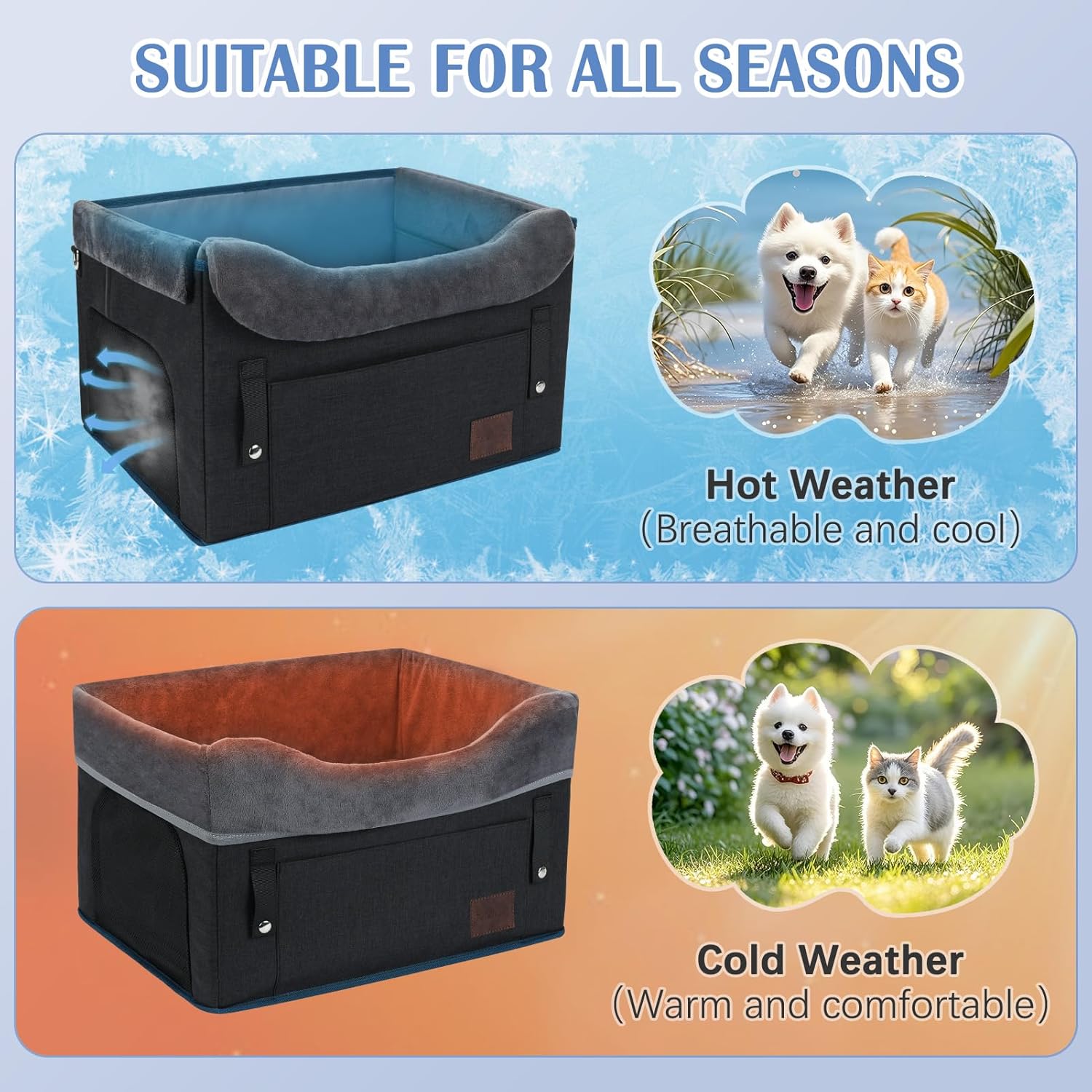 All Season and Two Heights: Breathable mesh without seat cover is more suitable for hot weather, with plush seat cover is better for cold weather, keeping pets warm in winter and cool in summer. The elevated design can elevate your pet 3.9 inches high above the vehicle seat, allowing pets to sit higher and look out the window to reduce anxiety