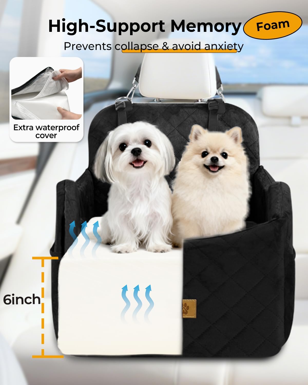 No Assembly Required and Waterproof: Our dog car seat for 2 small dogs is vacuum-packed for convenience. After unboxing, we recommend allowing 24 hours for the sponge to fully expand and reach its optimal shape before use. Featuring high-quality 30D sponge, it offers excellent resilience—no sagging, no flaws, and no fabric wrinkles. Upgraded waterproof cover to protect the seat cushion from getting wet. Choose us, and you’ll get a premium-quality dog car seat for 2 dogs that stands out for durability and comfort.
