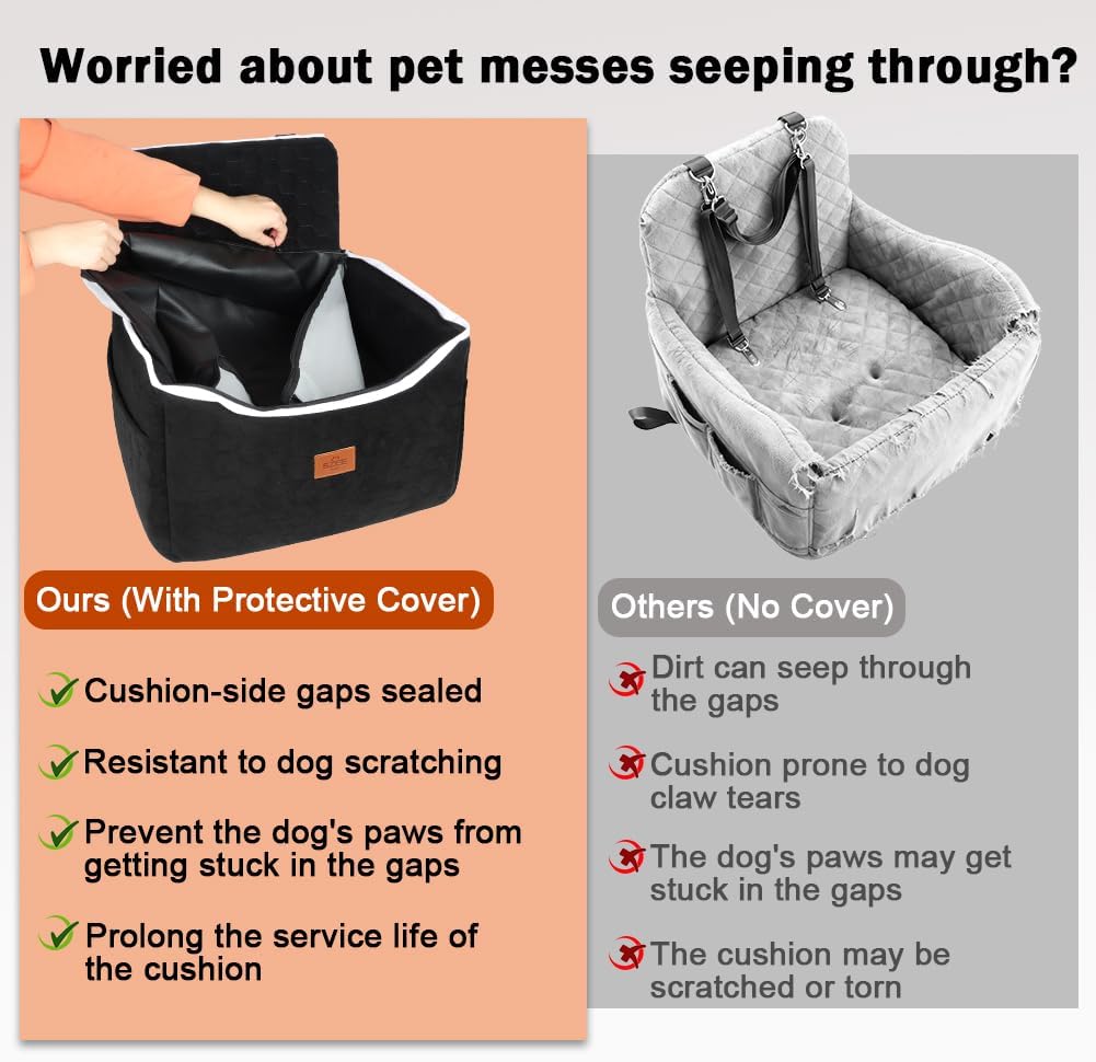 【 Luxury Leather Car Seat for Dog 】- This car seat for dog includes a detachable faux leather cover that adds a premium touch to your car interior. It’s scratch-resistant, dirt-blocking, and easy to clean, helping extend the seat’s lifespan while keeping your car elegant and spotless