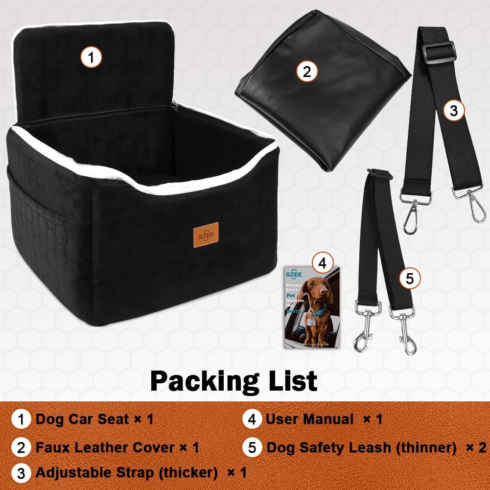 🧳 SZEE Dog Car Seat for Small/Medium Sized Dogs up to 30 lbs, Dog Booster Car Seat with Protective Leather Cover, Save Cleaning Effort, Reclinable Backrest (Black) — Dog Travel Gear Review & Current Price