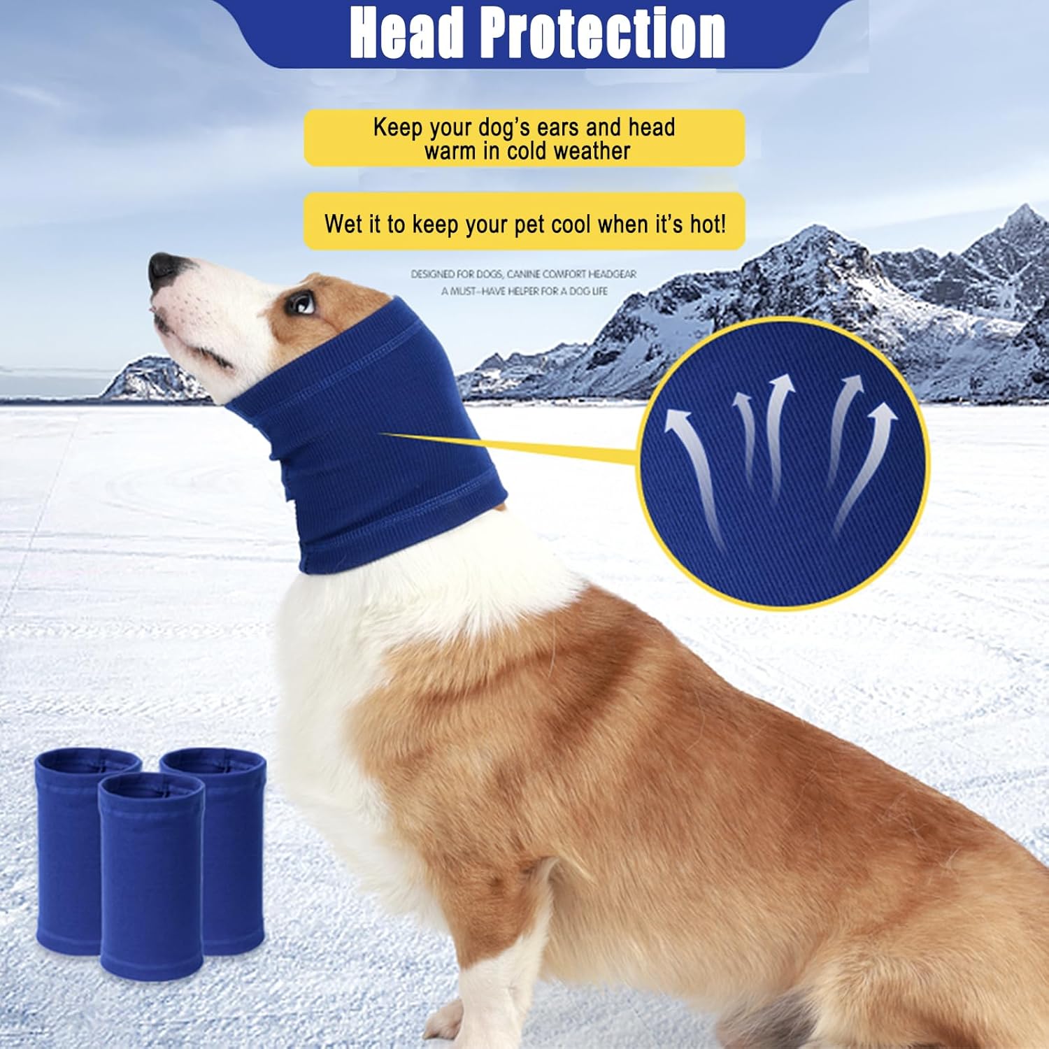 DURABLE, ADAPTABLE & AFFORDABLE: The dog head wrap is designed in the United States, durable in use; it is quick and easy to use and clean; it is machine washable; it is an affordable dog calming aid that helps relieve anxiety. In cold weather, it keeps the dog’s ears and head warm; in hot weather, wetting it can help keep the dog cool! Our soft, expandable double-layer fabric dog ear covers comes in three sizes, suitable for most dog breeds. Please refer to the size guide before purchasing
