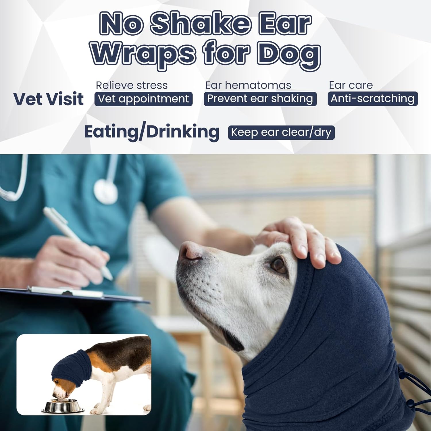 UPGRADE ANTI-SLIP ADJUSTABLE DOG EAR COVERS FOR NOISE: This ear cover for dogs has been upgraded with two adjustable drawstrings, which solves the problem of it slipping easily. When a long-haired dog wear the dog ear wraps, it can avoid hair hanging down to the dinner plate when eating or drinking water. And the dog ear covers can be use as a scarf, keep pets warm when they go out in cold weather