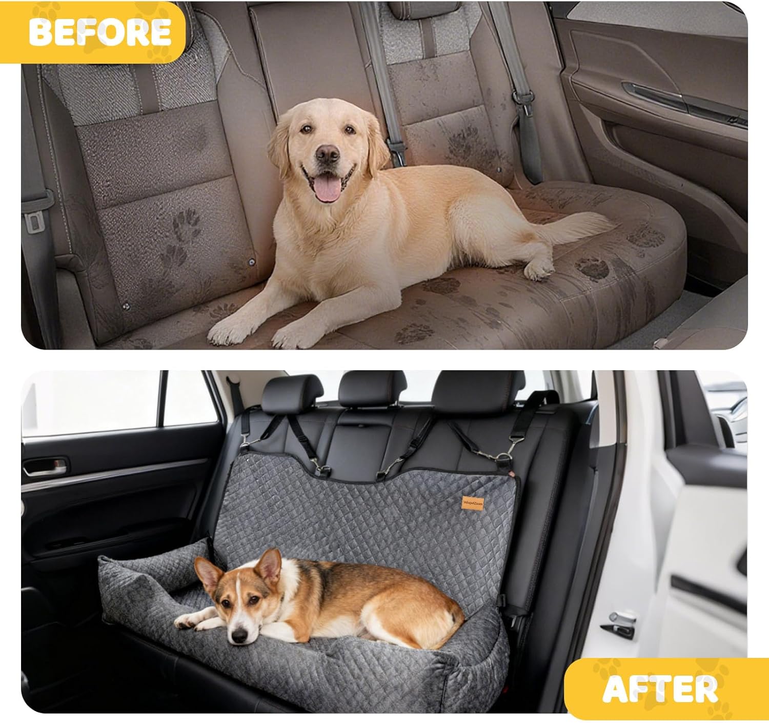 🧳 Dog Car Seat for Large Medium Dogs,Car Dog Back Seat for Under 100 lbs,Pet Booster Seat Cushion,Easy to Install with 2 Safety Leashes,Gray — Dog Travel Gear Review & Current Price