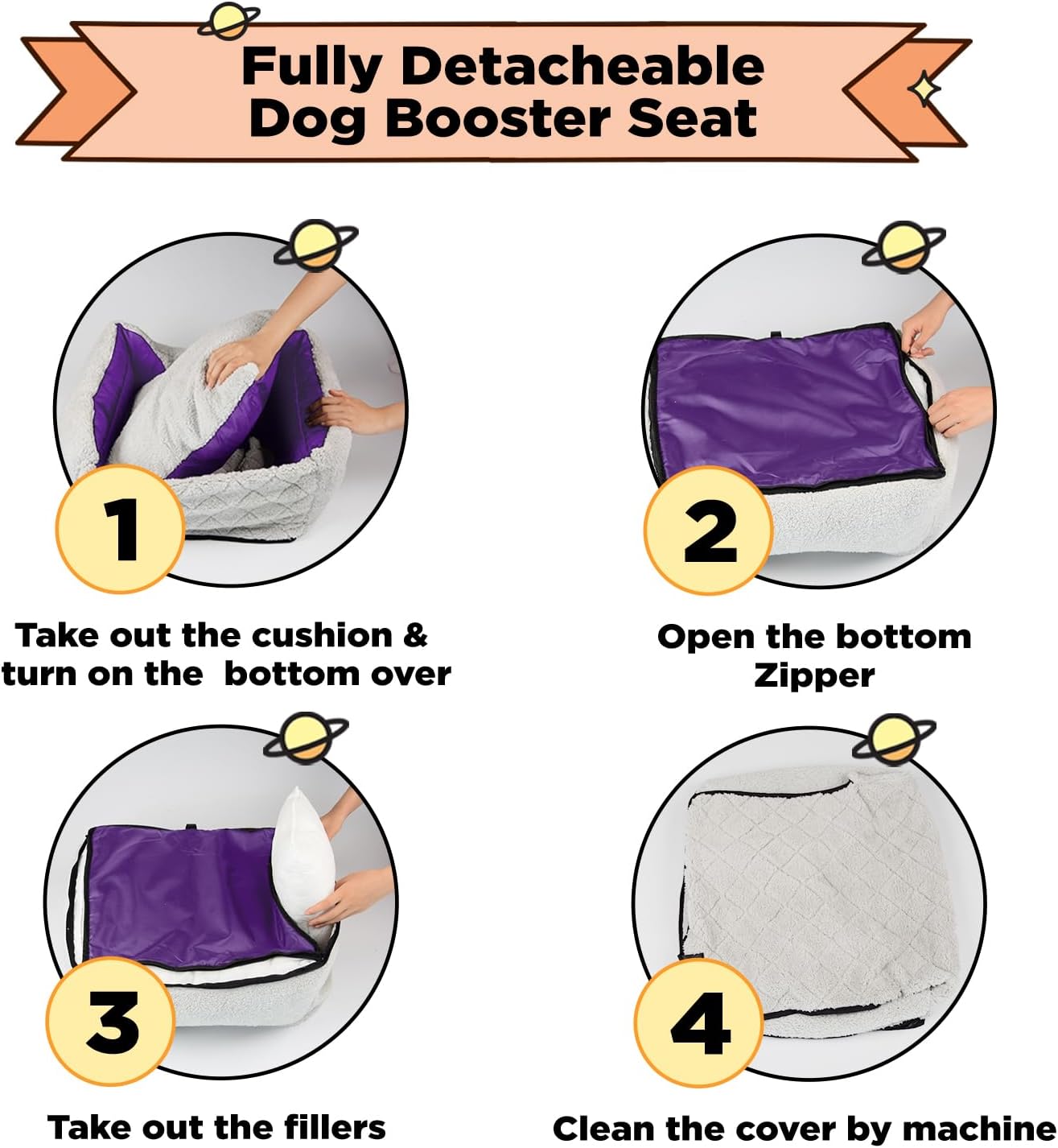 Easy to install: easy to install, adjustable belt design, Pp cotton pieces into the bag, car pet booster seat easy to install, belt fixed on the seat floor and back, belt length fixed adjustable, can be placed in the front seat or back seat according to need, suitable for most car seats and models.