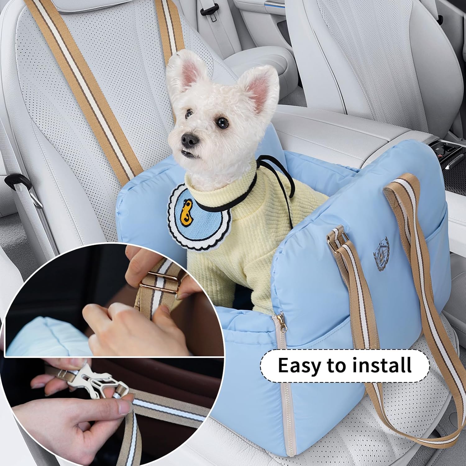 Safe: Provide maximum protection and comfort in the front or back seat with this Pet Car Booster Seat. Equipped with different ways to secure your pet, it ensures they stay safe and secure while you focus on the road. The adjustable premium buckle adds an extra layer of safety, providing a secure fit.