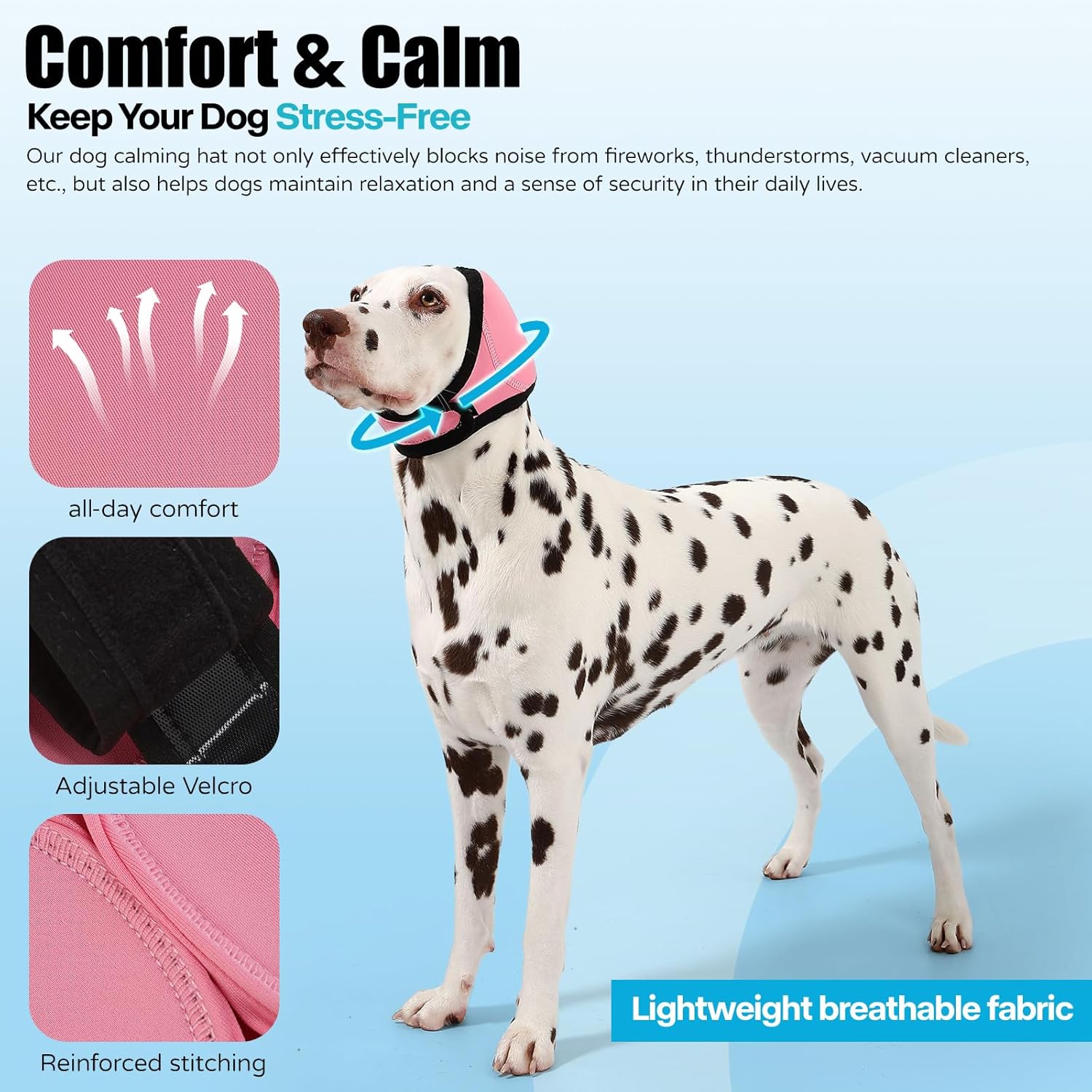 Ear Protection and Anxiety Relief: Our upgraded Velcro Dog Headband effectively reduces noise levels, protecting your dog’s sensitive ears from loud noises, such as fireworks, thunderstorms, or construction sites. It also helps alleviate anxiety and stress in dogs during these noisy situations.