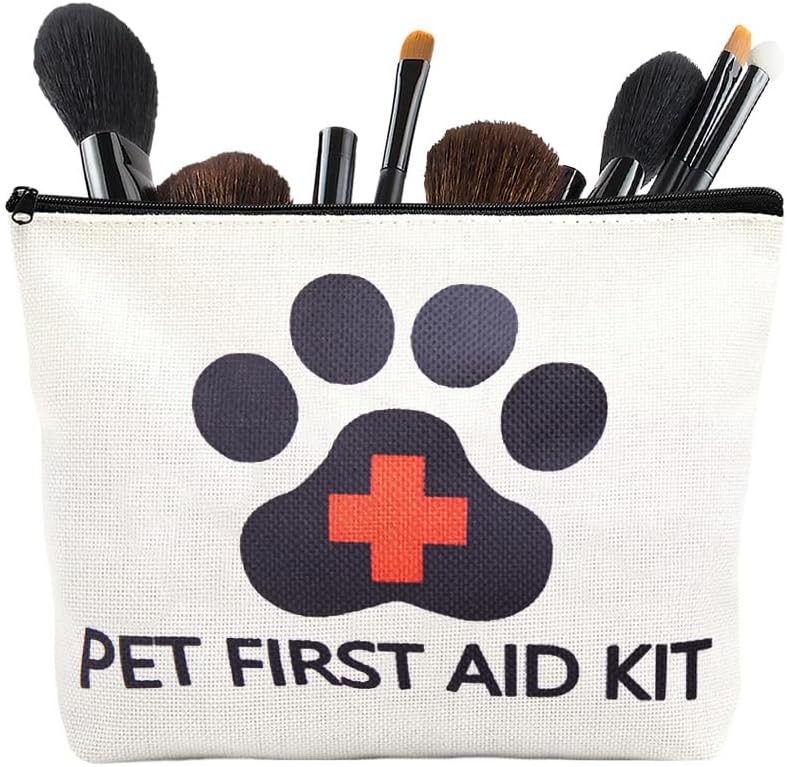 Pet First Aid Kit Makeup Bag: This first aid bag empty features with pet first aid kit and cute pet paw pattern, suitable use as dog puppy med bag for dog doggie owner, cat meds pill drug bag for cat kitten owner, also perfect first aid kit bag for women dog mother, adventure medical kit for dog lover