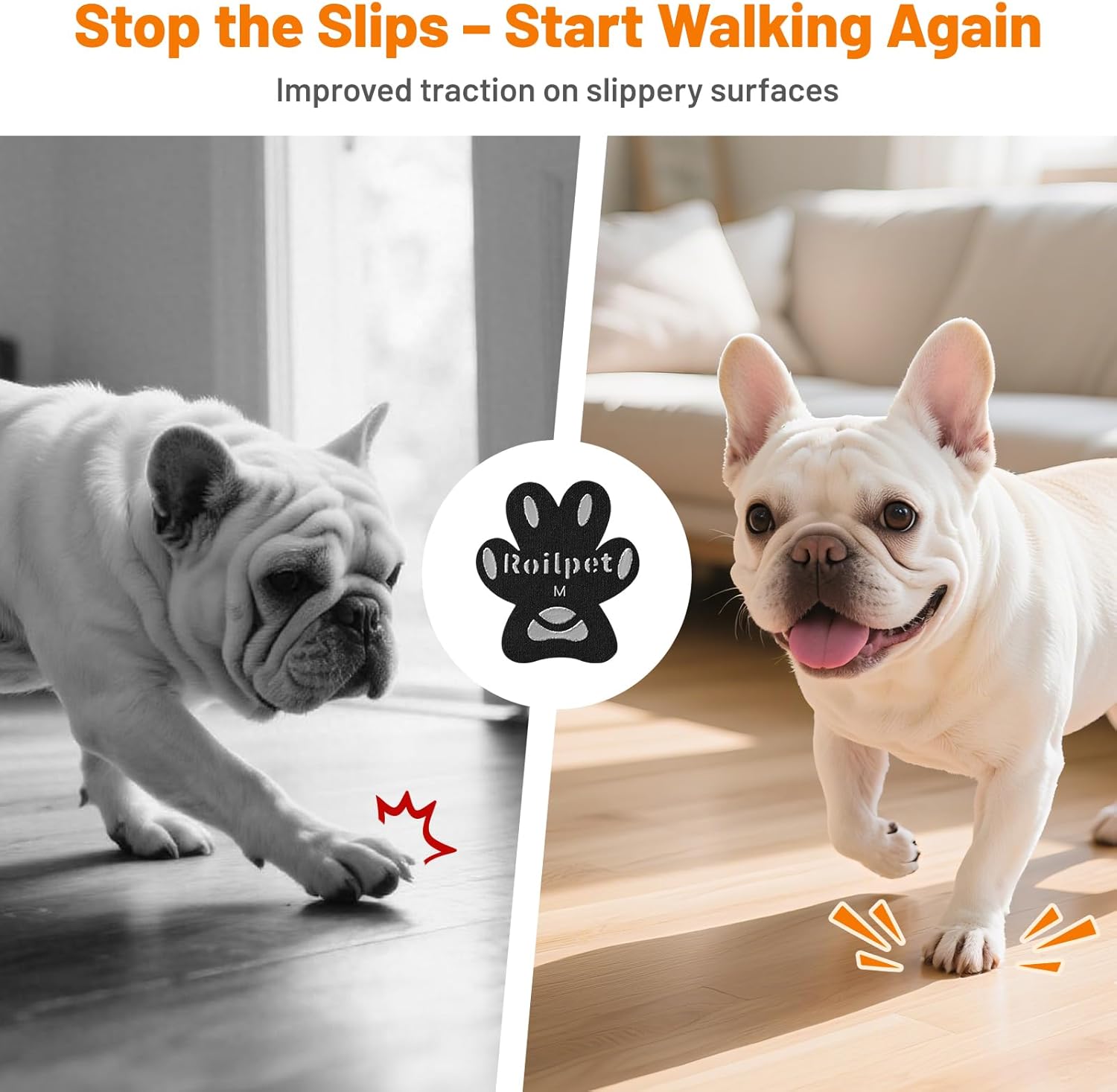 【More Traction, More Stability】Upgraded Roilpet paw pads for dogs traction provides your pup with more reliable traction on hardwood floors and other slippery surfaces, helping them to stand and walk with confidence without slipping or falling