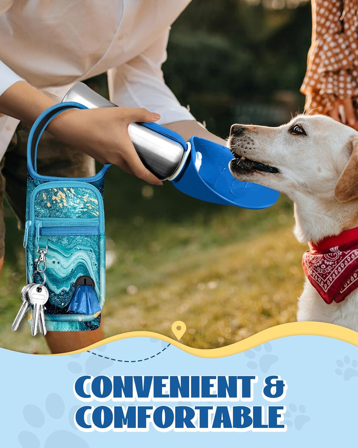 Durable and Comfortable: Water bottle bag is made of lightweight insulated neoprene, features nylon shoulder strap to enhance durability, it’s the go-to choice for dog owners (Due to different equipment parameters, there may be color differences)