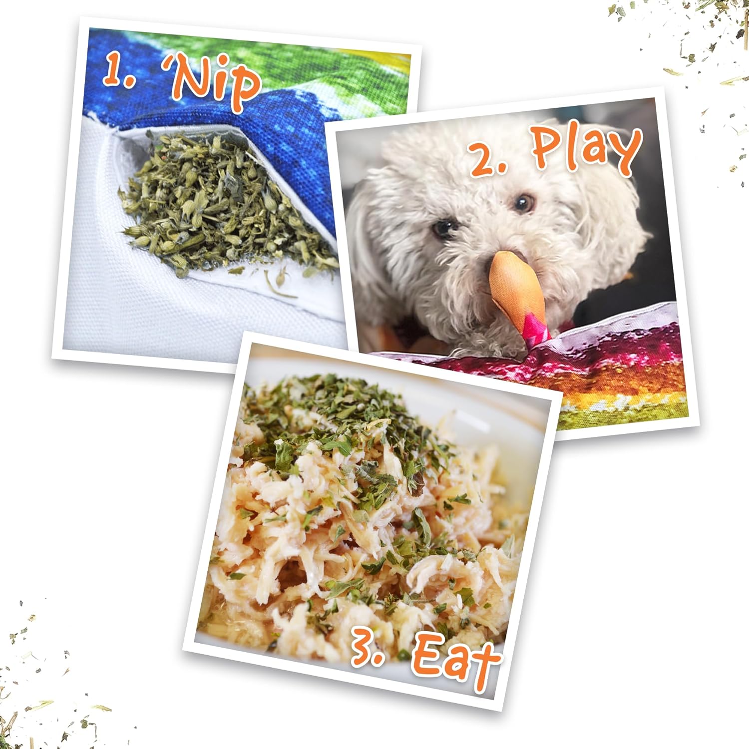 SAFE & ORGANIC CATNIP FOR DOGS – Each bundle comes with a bottle of organic Juananip, a dog-safe alternative to catnip that stimulates and soothes. Made without artificial additives, this hand harvested herbal blend is perfect for pet parents seeking natural enrichment toys. Refill again and again for continued fun and relaxation.