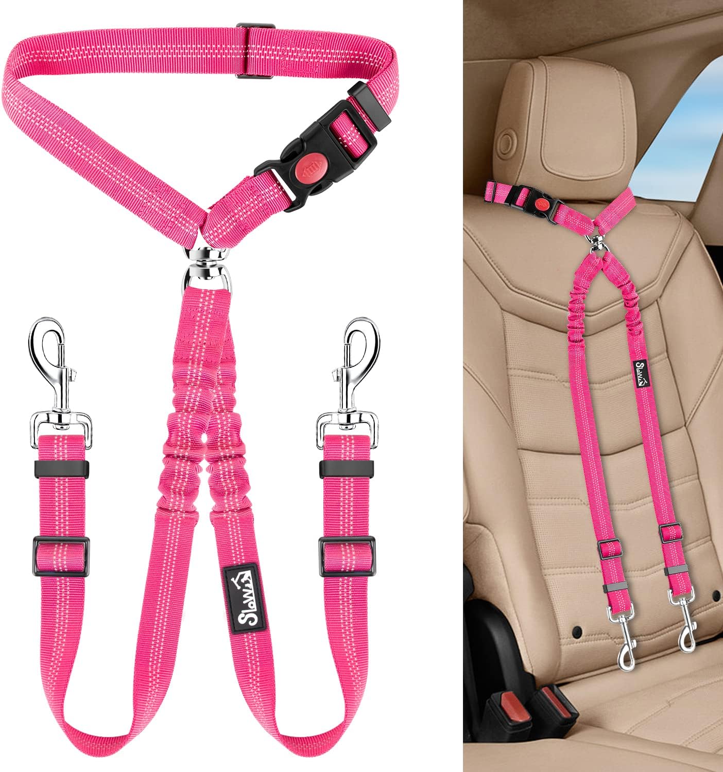 🧳 Lukovee Double Dog Seat Belt, New Dual Pet Car Headrest Restraint Safety Seatbelt No Tangle Dog Leash Duty Adjust Elastic Bungee Puppy Lead Splitter Connect Harness in Vehicle Travel for 2 Dogs (FL) — Dog Travel Gear Review & Current Price