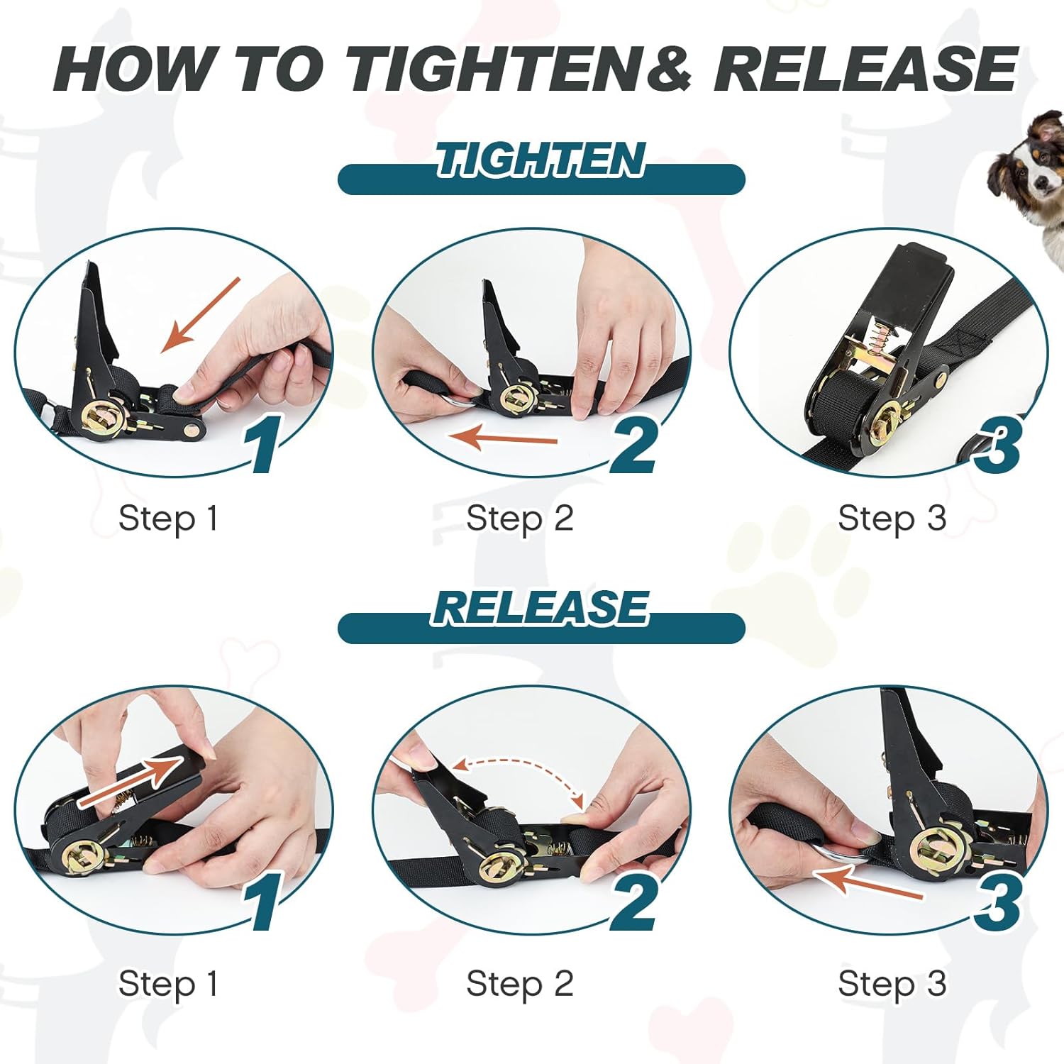 Quick and Easy Installation: with its intuitive setup, this truck bed straps system allows fast and hassle-free installation, so you can secure your dog in minutes before hitting the road