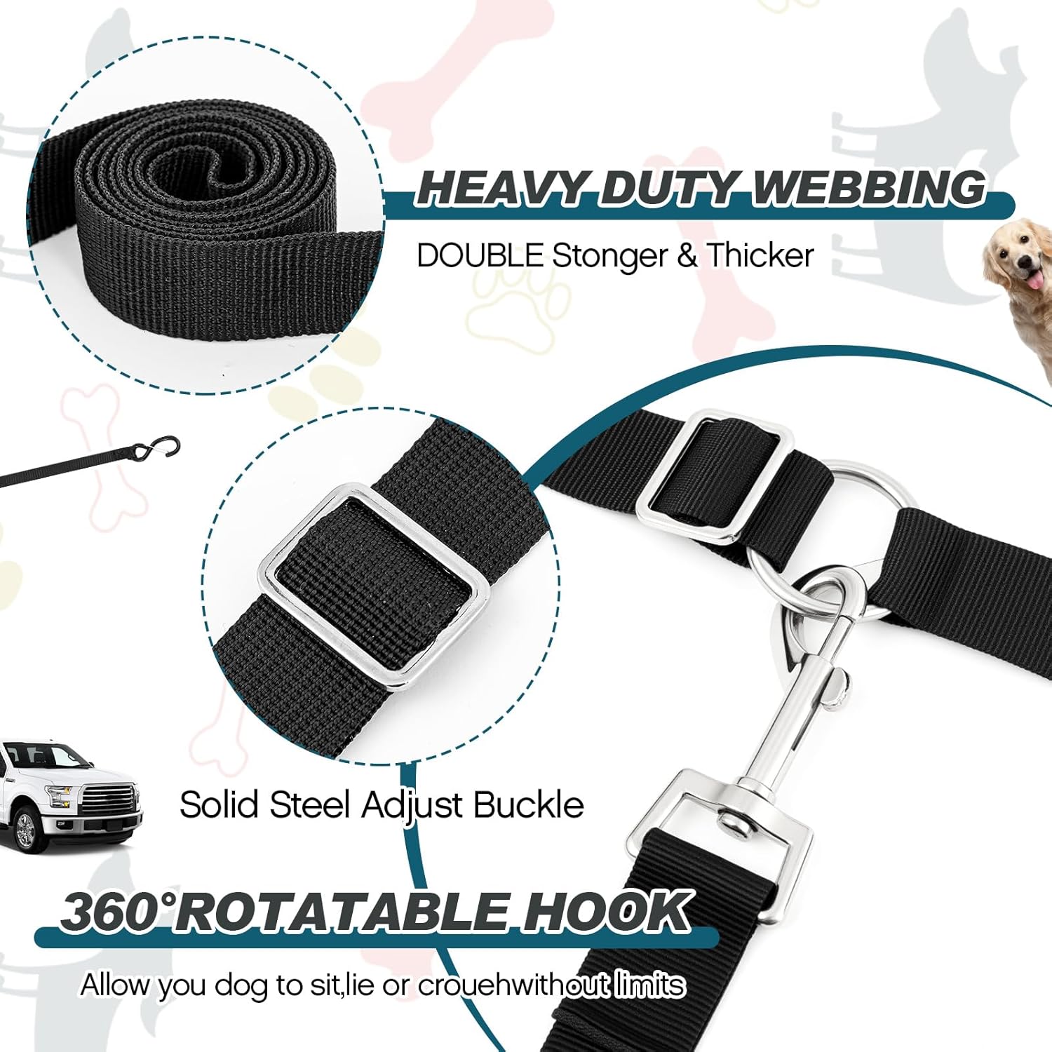 Safety-focused Design: designed with pet safety in mind, this truck bed dog tether meets high-security standards, keeping your dog stable and protected in the truck bed during transit
