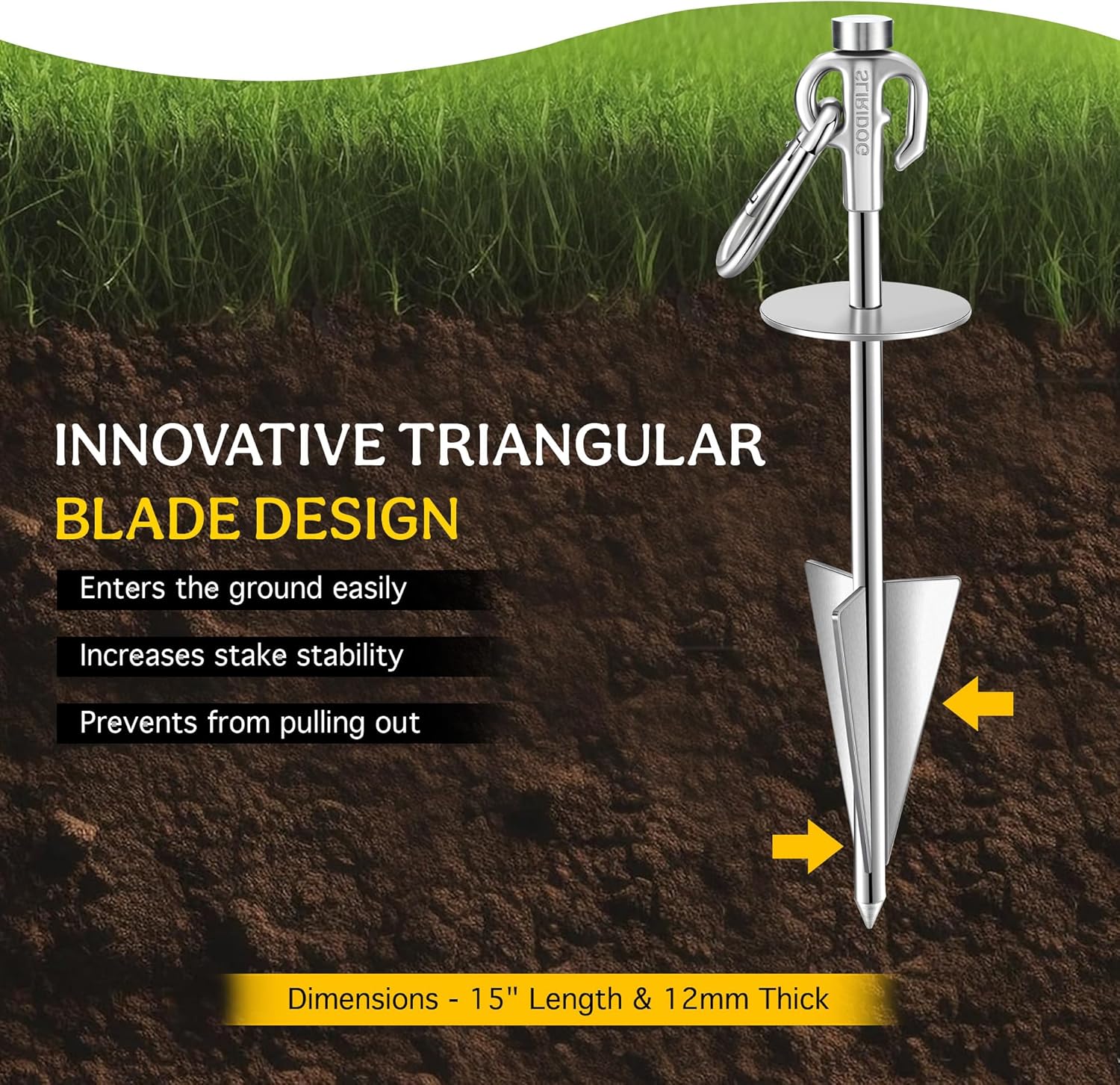 EASY TO INSTALL AND EASY TO USE :The bottom of the dog post adopts a unique triangular blade design, making it easier to enter the ground and increasing the stability of the dog post, which is not easy to pull out of the ground. Suitable for: Yard, Outdoor, Camping, Grass, Dirt