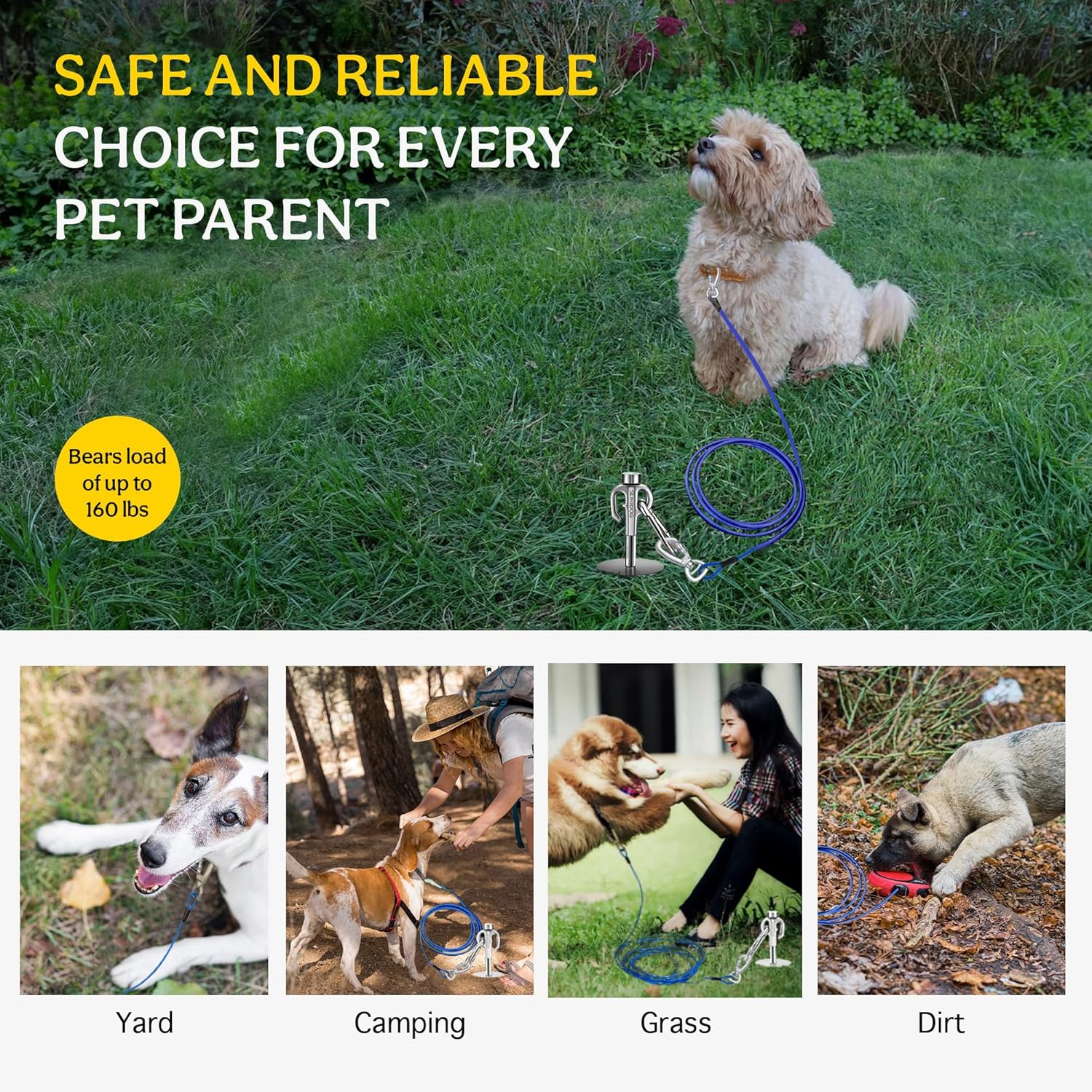 Patented design:Our product designers, based on the actual user experience, make continuous improvement to design this unique heavy duty dog stake, which is patented and has a good stability and durability.Providing ample space for your dog to roam and explore.
