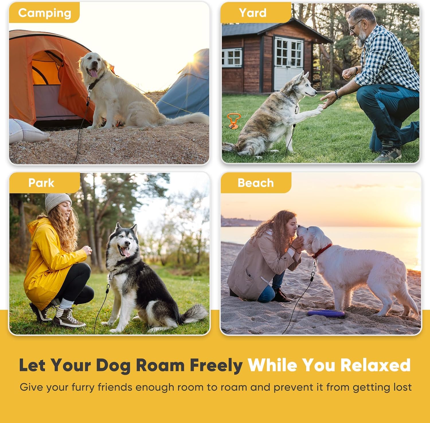 Outside & Wide Applications: This dog tie out cable is suitable for camping, yard, beach, park, quick potty trips in the yard and etc